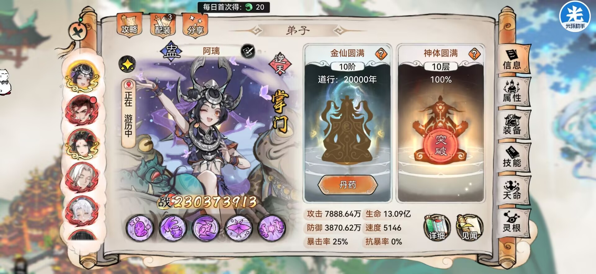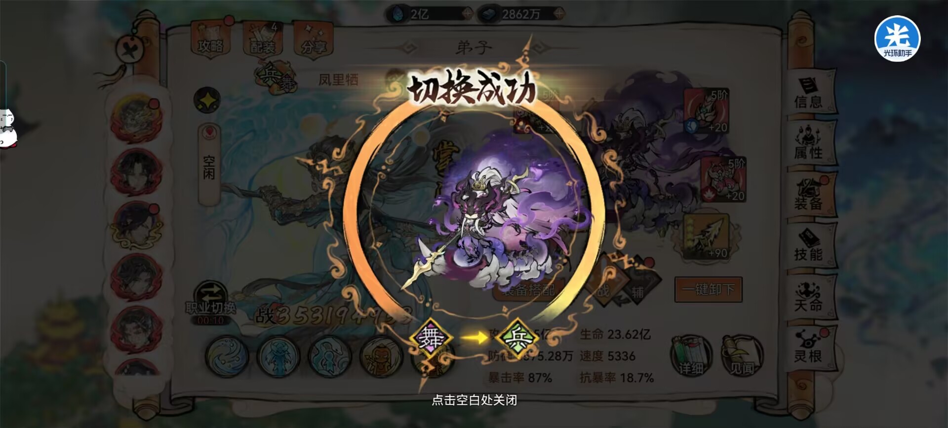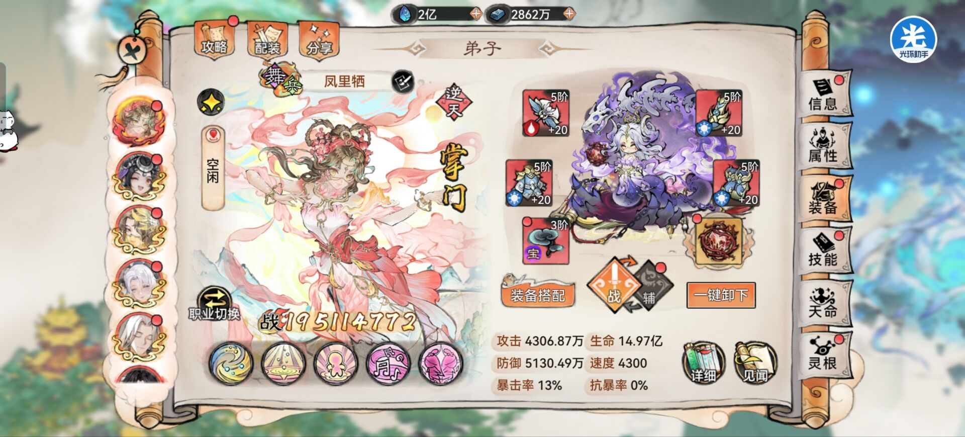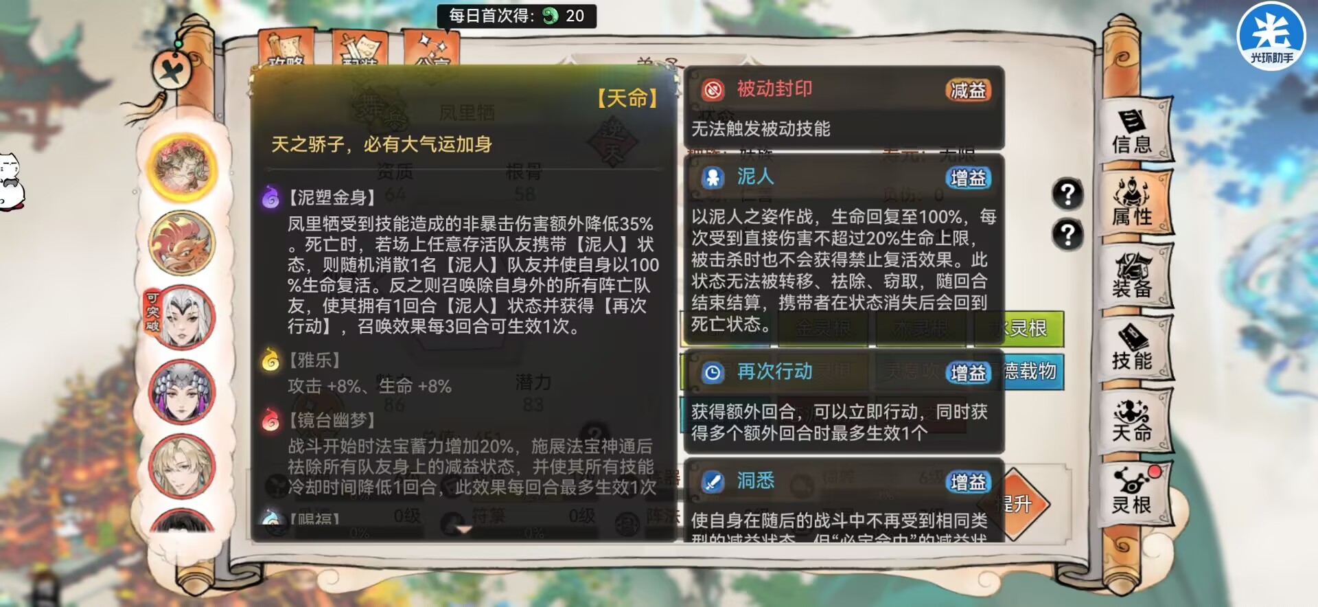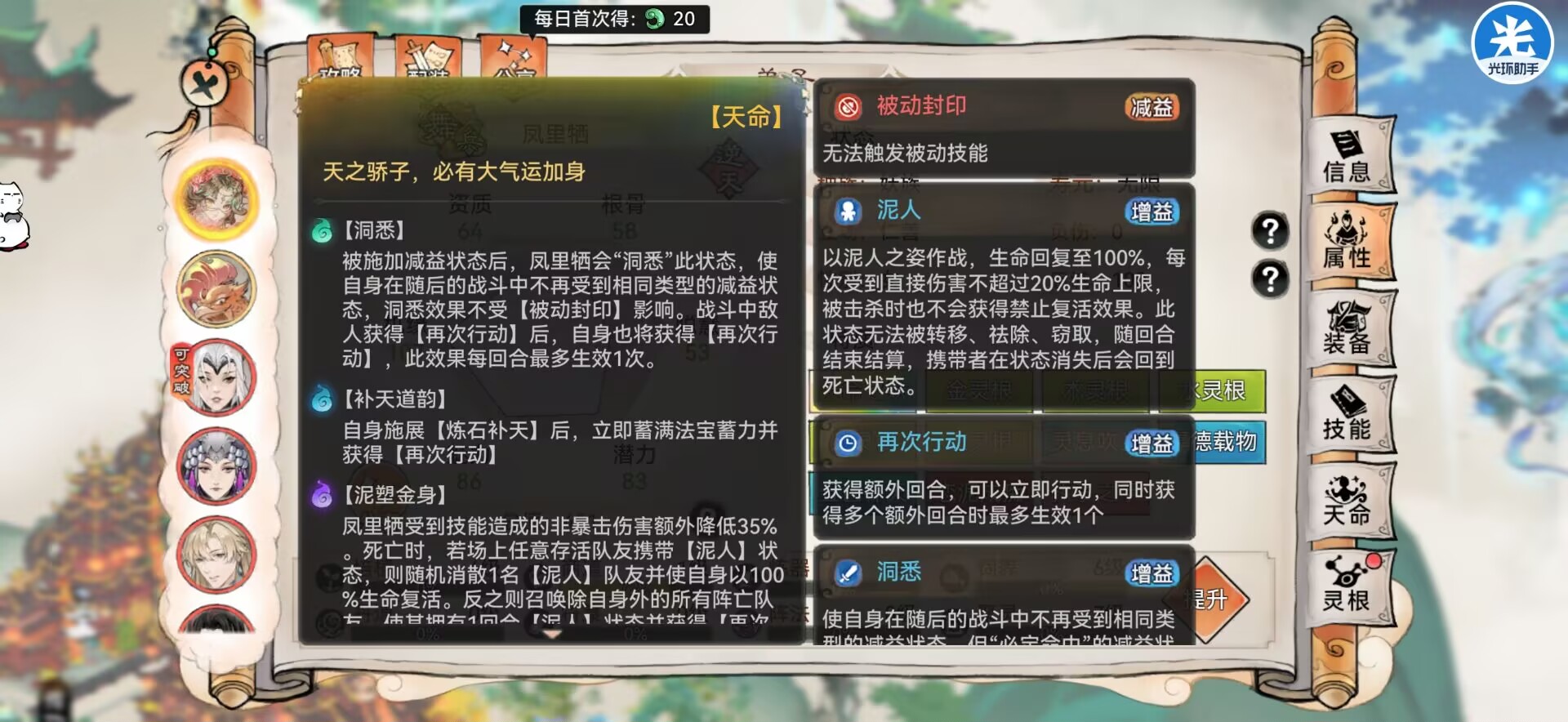 这点可以让凤里牺的法宝技能加快循环🔁,从而更好的配合队伍打出优势,也提升了凤里牺在战斗中对策的重要性。