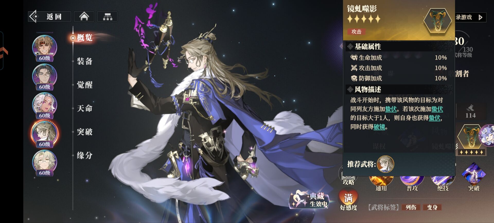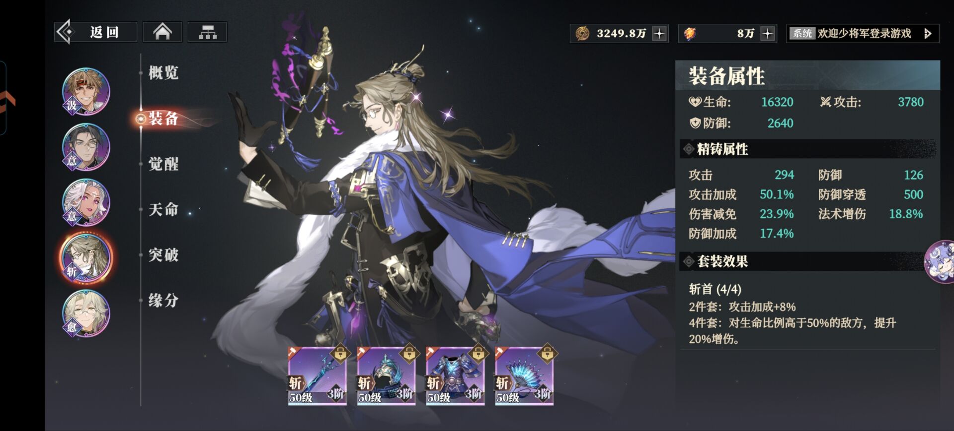 ①庞统:战意套(因为阵容没有黄月英和孙权很缺战意,所以必须带战意套)