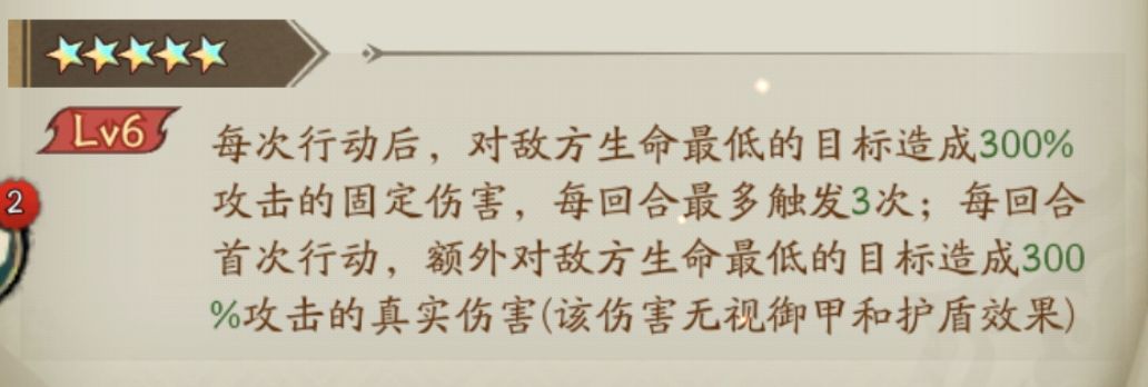 这个真实伤害,满星后最大可对敌人造成300%倍率的伤害,而且也是优先针对残血敌人的。