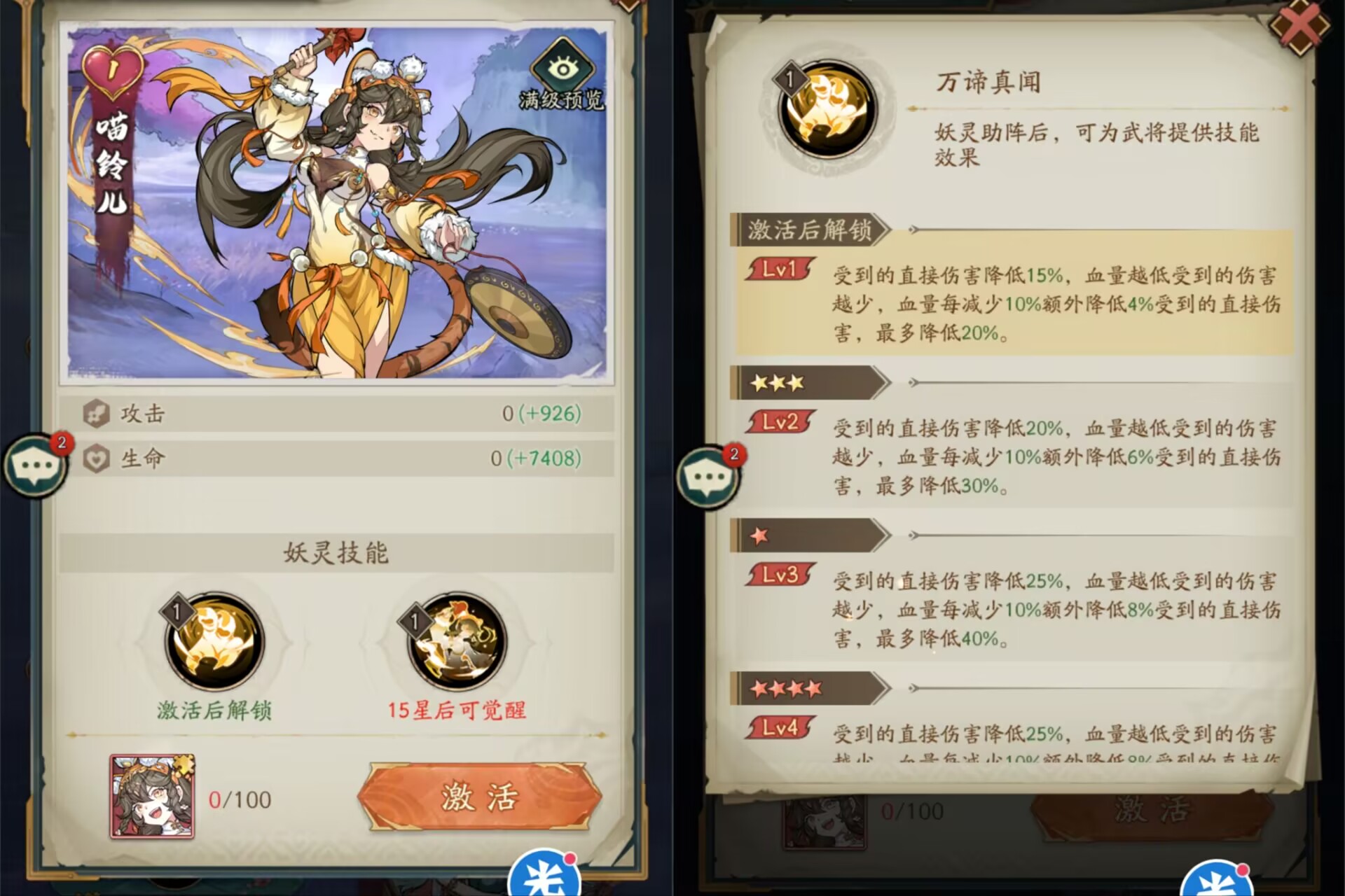 以上这两个妖灵就是新版本狮子最推荐大家去培养第二梯队的妖灵,具体可以根据自己的阵容需求来选择培养哪个妖灵。