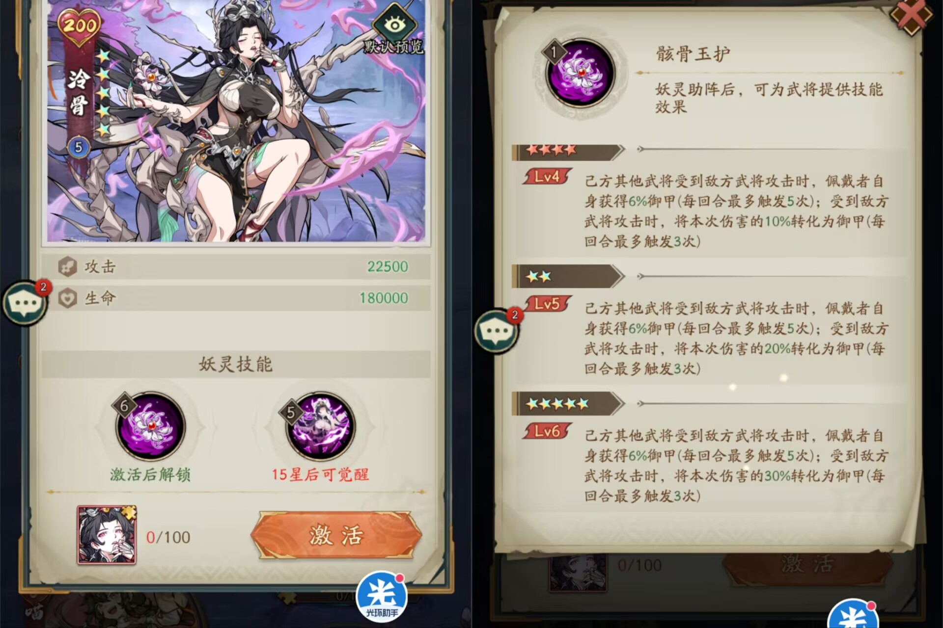②【冷骨】是仅次于桃花仙的防御妖灵。