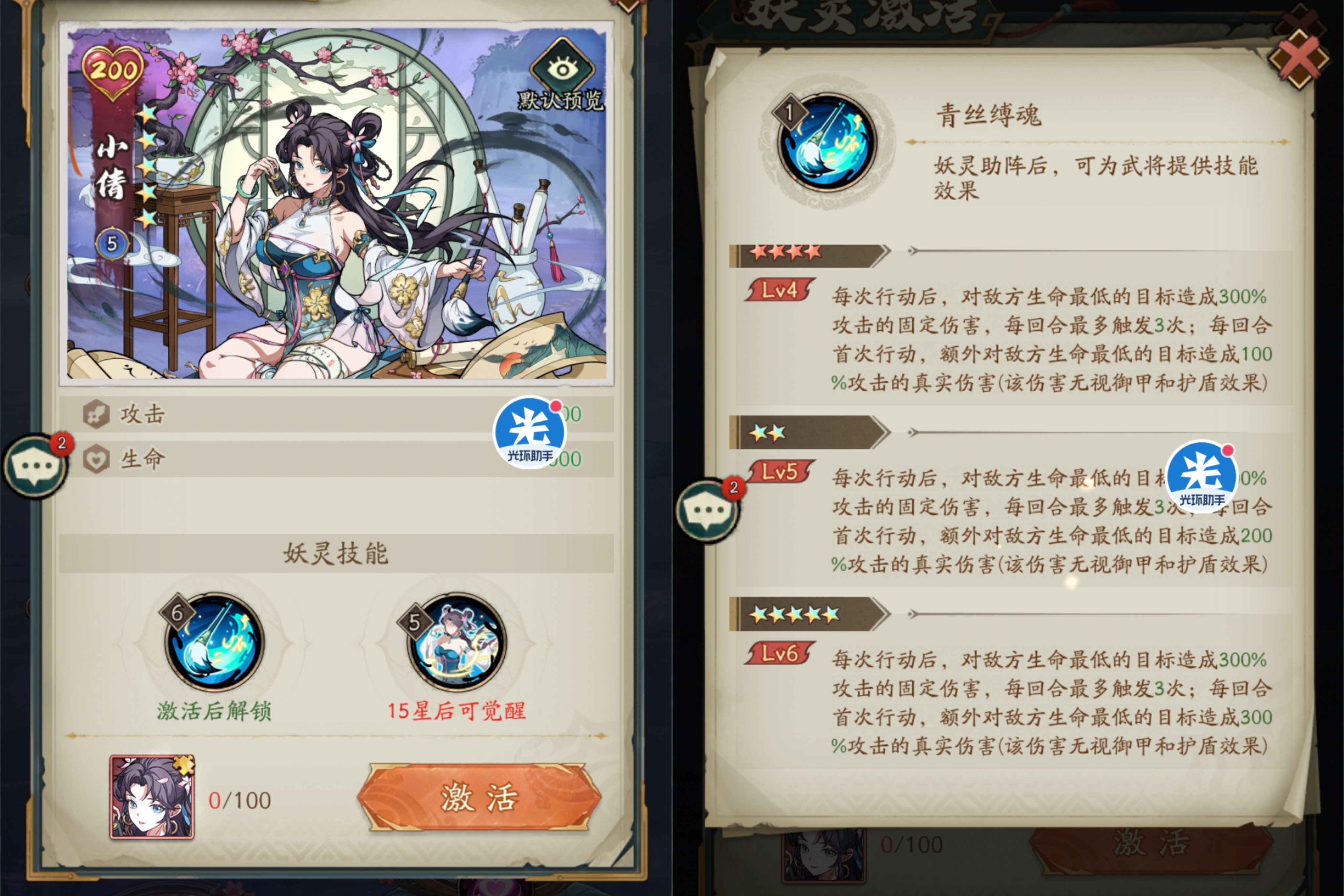 解析:小倩是最新登场的妖灵其机制就是针对残血敌人多段固伤和真实伤害能够对残血敌人造成致命打击,非常适合搭配马超、华雄等多动症武将。