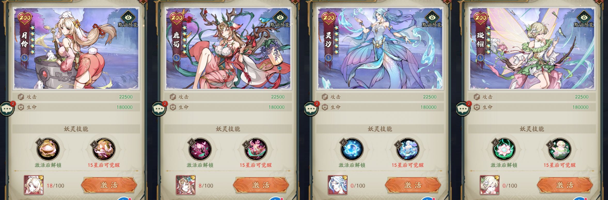 ④第四梯队的妖灵:喵铃儿、月怜。