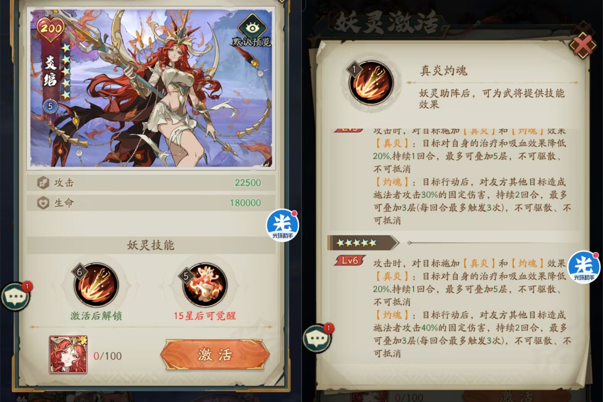 解析:炎绾也不属于太老的妖灵,不过这个妖灵从登场到现在就没有太强势过,用过的玩家应该都知道不好用,主要是机制不够突出,而且数值给的太低,必须是9星以上才有点用。