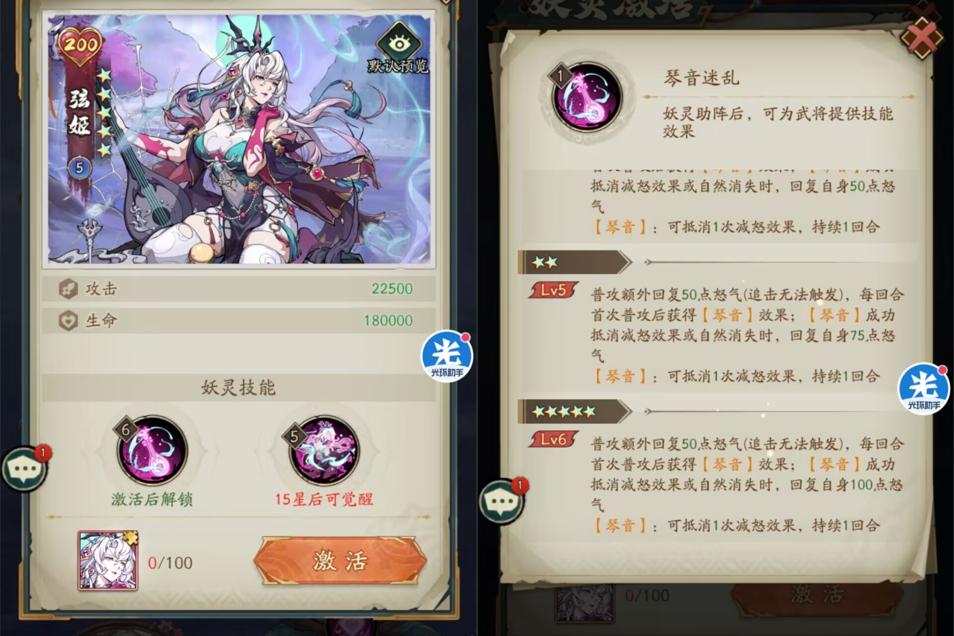 解析:弦姬也是新登场的妖灵之一,也是最扯淡的妖灵之一,普攻回怒搞抽象追击还无法触发回怒,而且被动【琴音】每一个每回合只能抵消1次减怒效果,效率太低,有5星极道回怒的玩家根本不需要这个。
