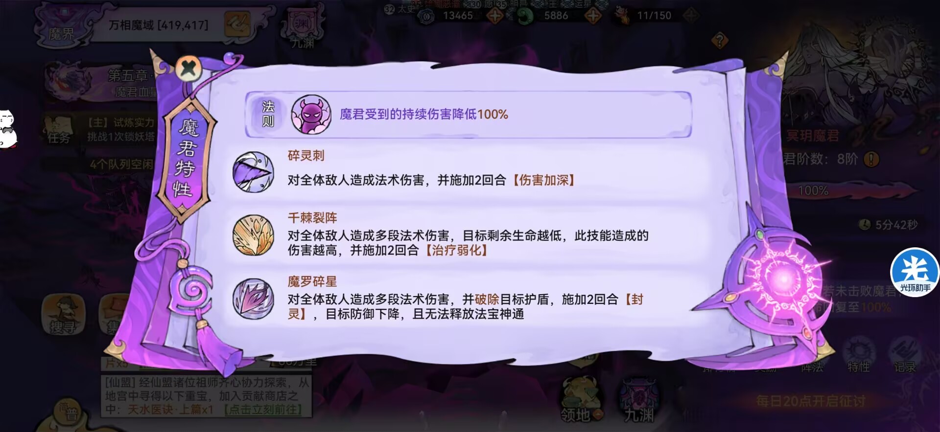 随着第五章【决战魔君】的开启第二赛季魔界也接近尾声了,相信有的比较活跃的区已经打完魔君了。所以本期狮子给大家总结写下最后的魔君的玩法攻略,那么至此第二次魔界就正式结束咯。