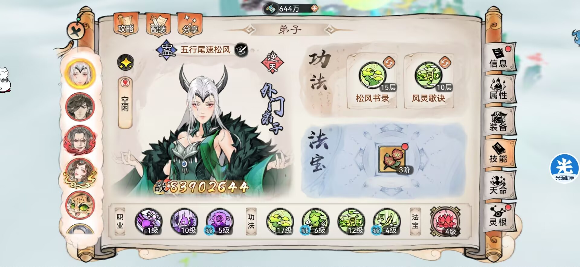 功法:松风+风灵。