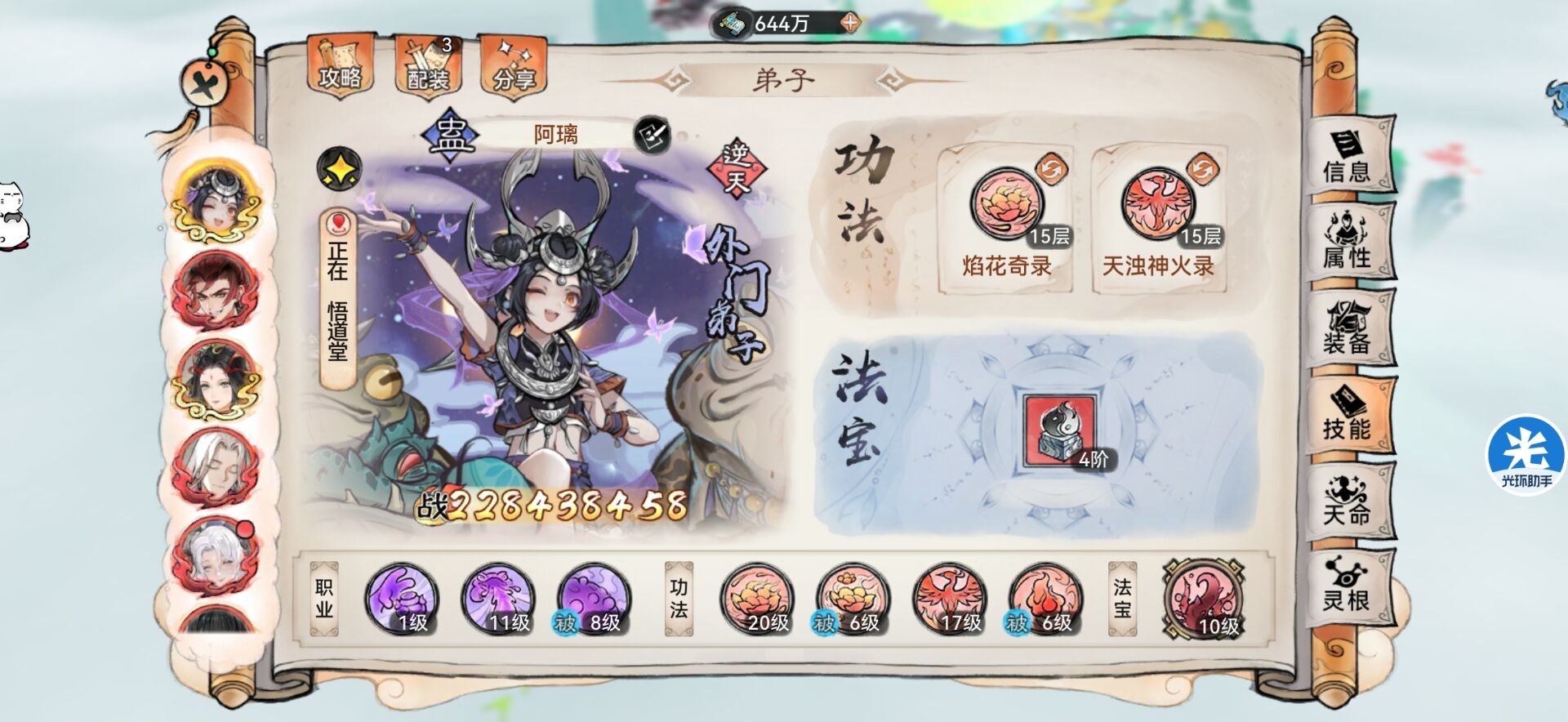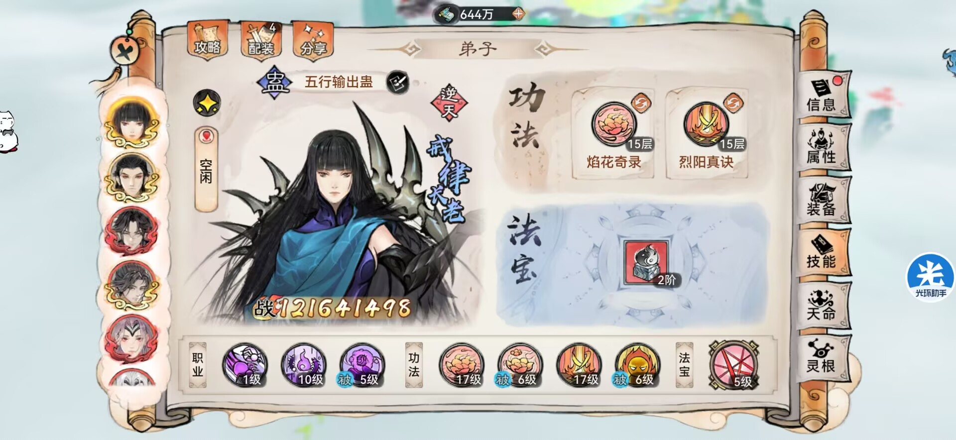 法宝:三阶花(给全体队友提供法宝循环🔁)