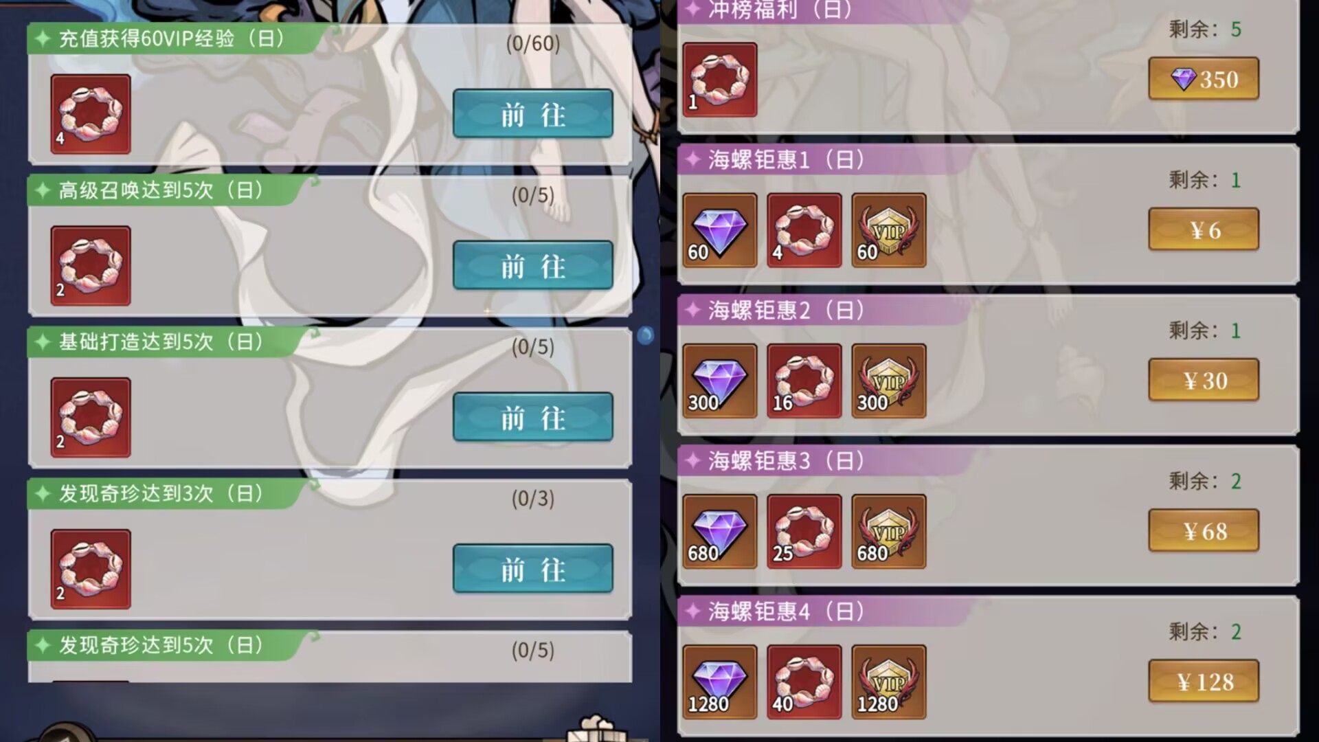 神奇海螺🐚终于在开服的第58天首次返场了,只能说这类活动做囤囤鼠玩家有绝对的优势。