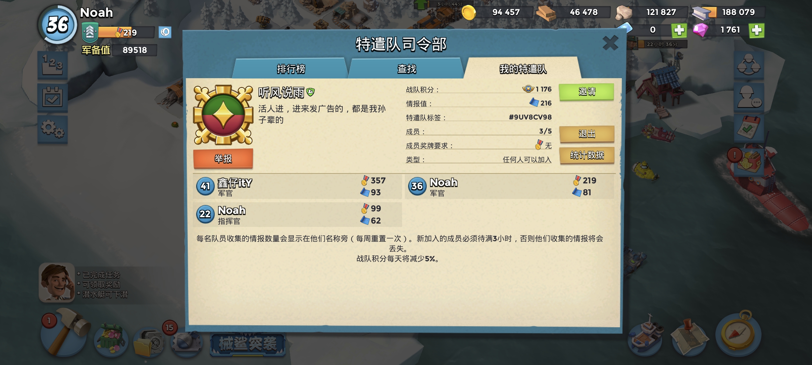 特遣队招活跃队员,任务基本每天都开