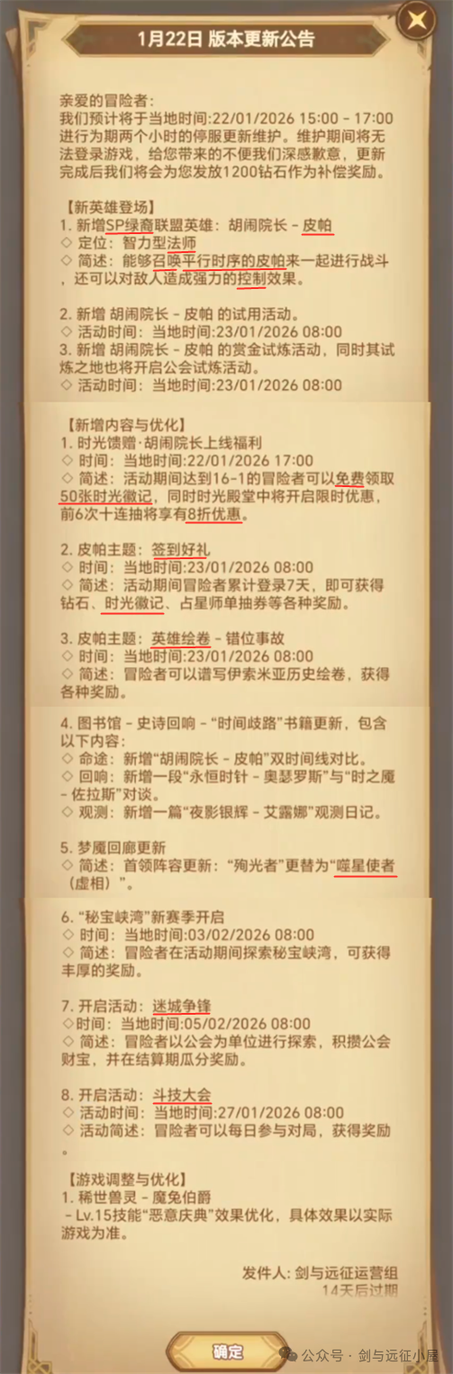 3.新增 胡闹院长-皮帕 的赏金试炼活动,同时其试炼之地也将开启公会试炼活动。