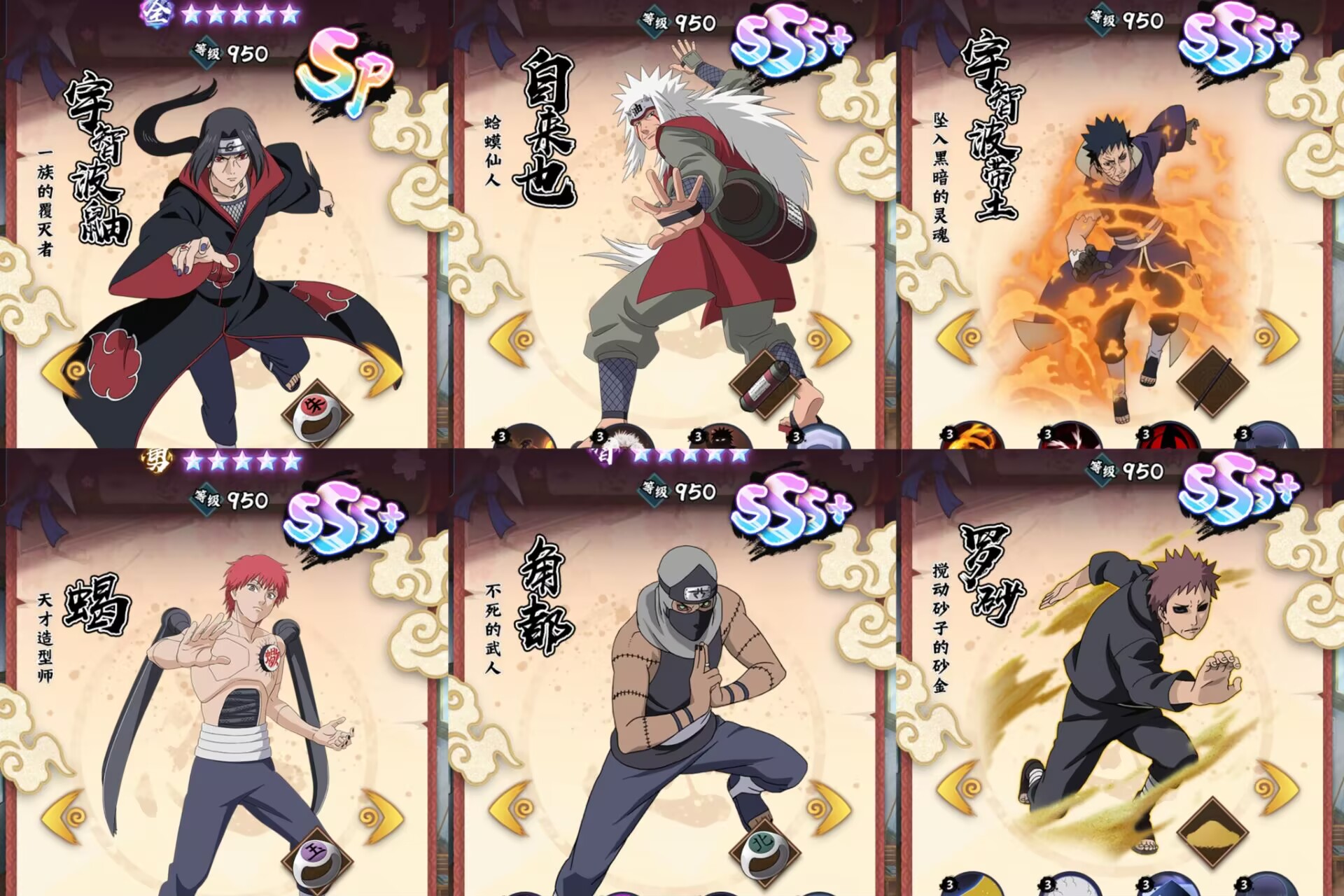 佐助和鼬神星级可以不用抽太高,佐助金4+鼬神金4就能玩了。鼬神+佐助双sp组合,绝对是目前版本最强的T0组合。
