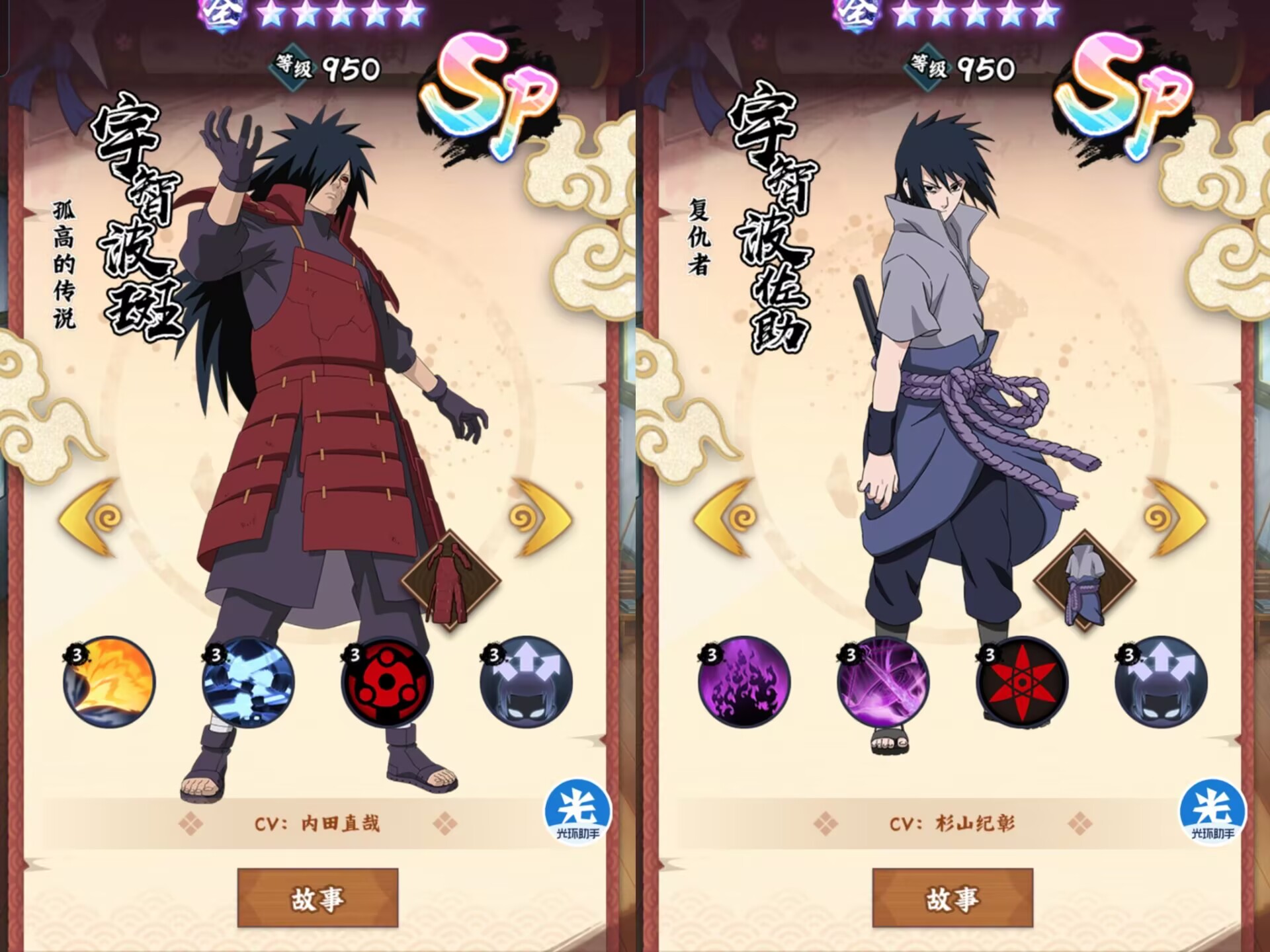 比如说抽:sp佐助和sp宇智波斑(顶级输出)打伤害更舒服。