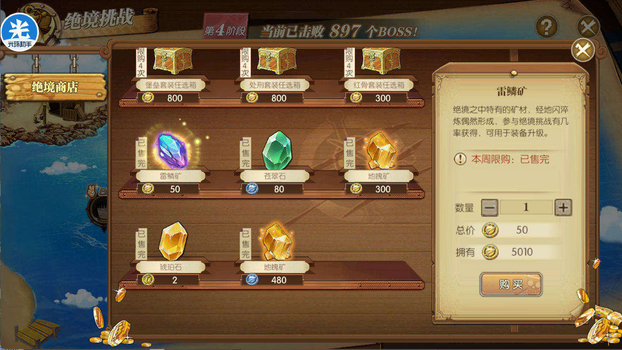 同时商店是每周刷新的,这个大家可以看着来,直接换有用的最好,没用的就算了。老王是不建议金币换堤坡和重铸石,具体大家看着来!
