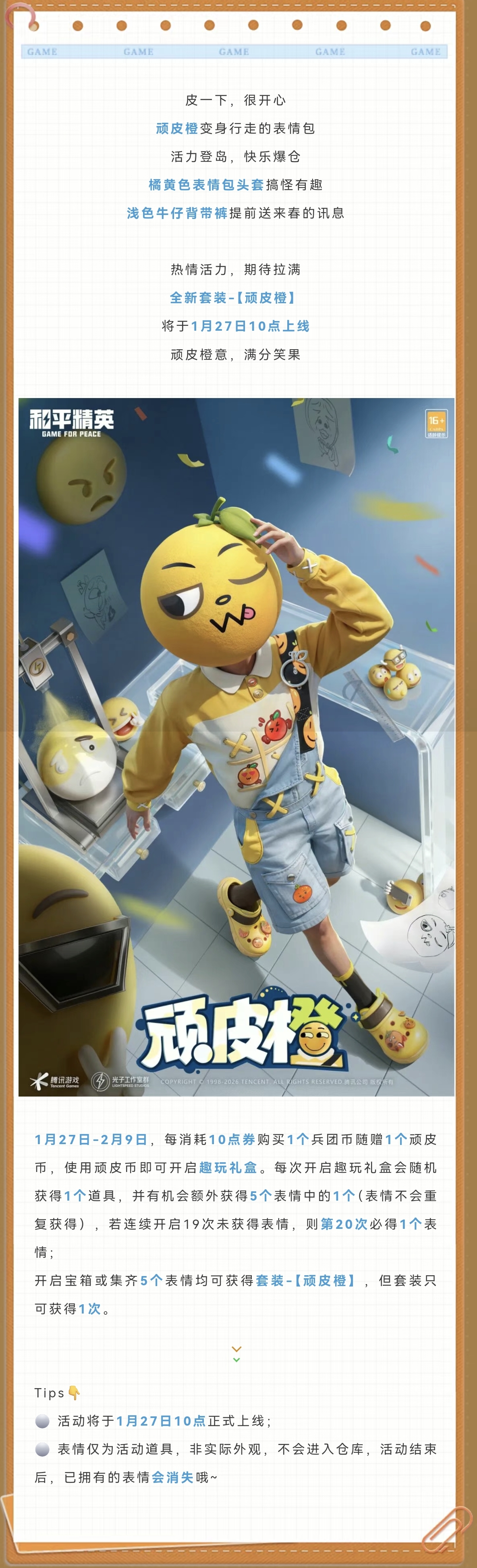 新皮肤爆料 | 顽皮橙意,满分笑果!全新套装-【顽皮橙】将于1月27日10点正式上线~