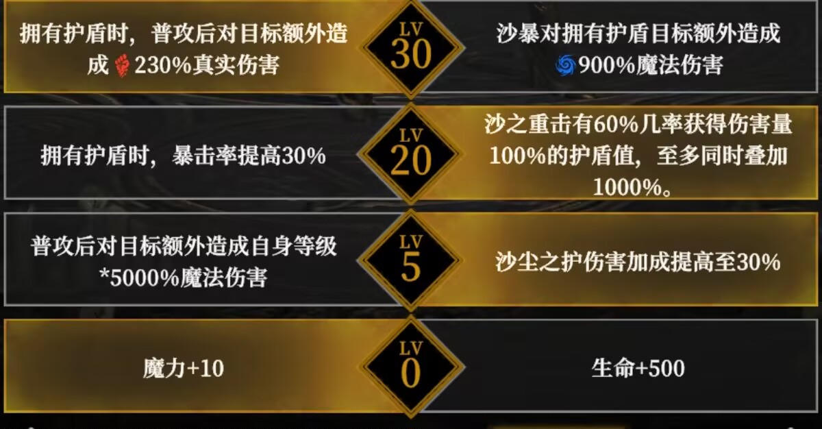 3:第三条天赋选择第2条【沙之重击转换护盾】