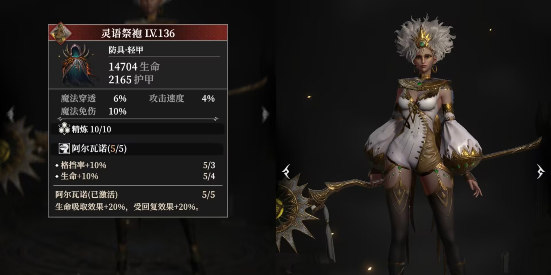 而且套装属性还提供格挡和生命加成。