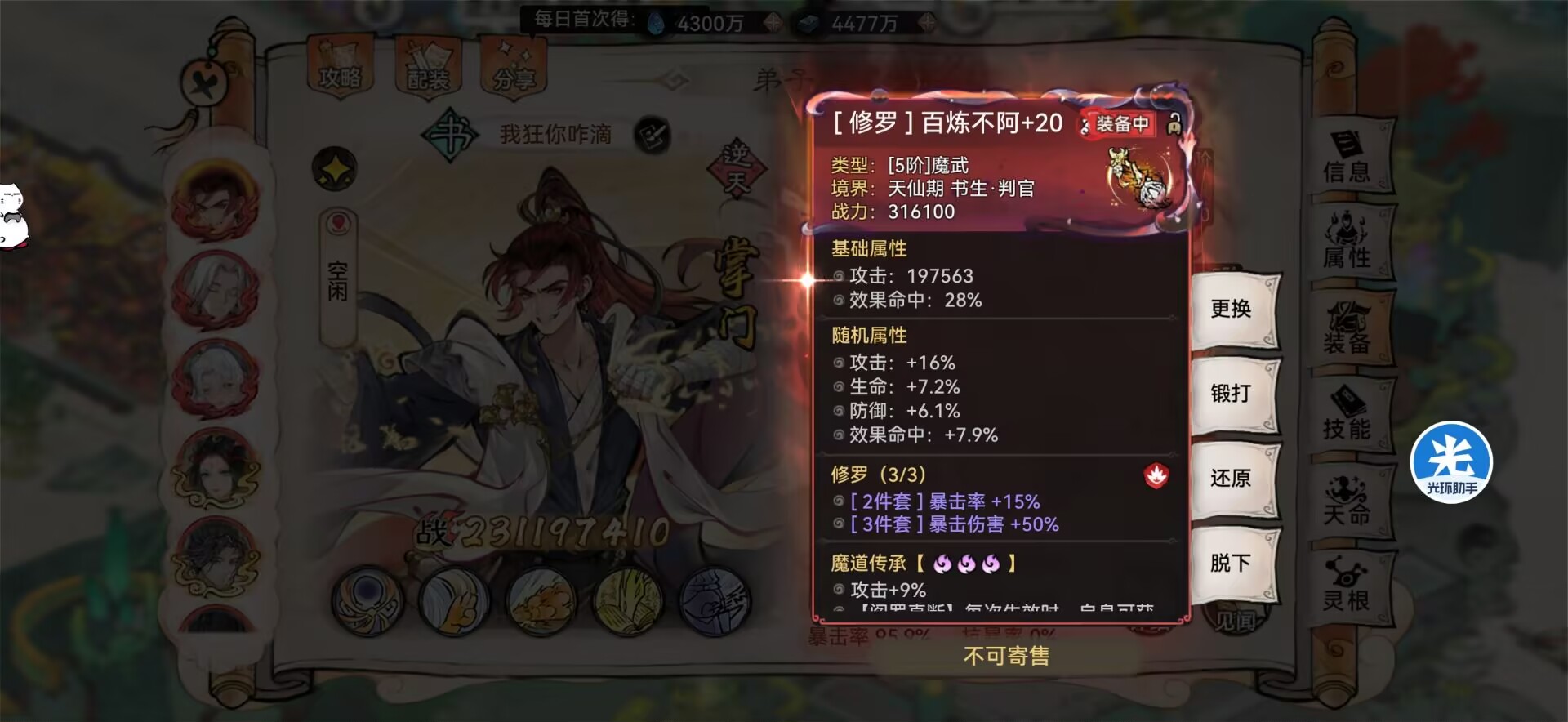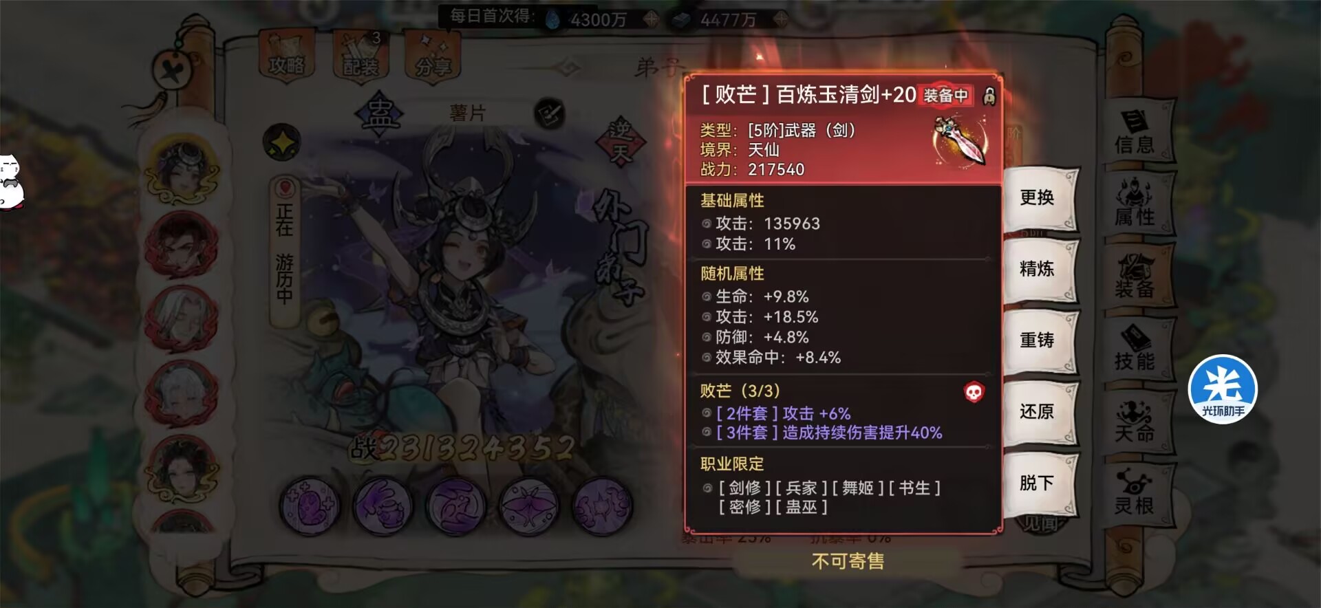 但是像卫寒这种【因果斩尽】不吃暴伤加成的弟子,就非常适合这个装备。