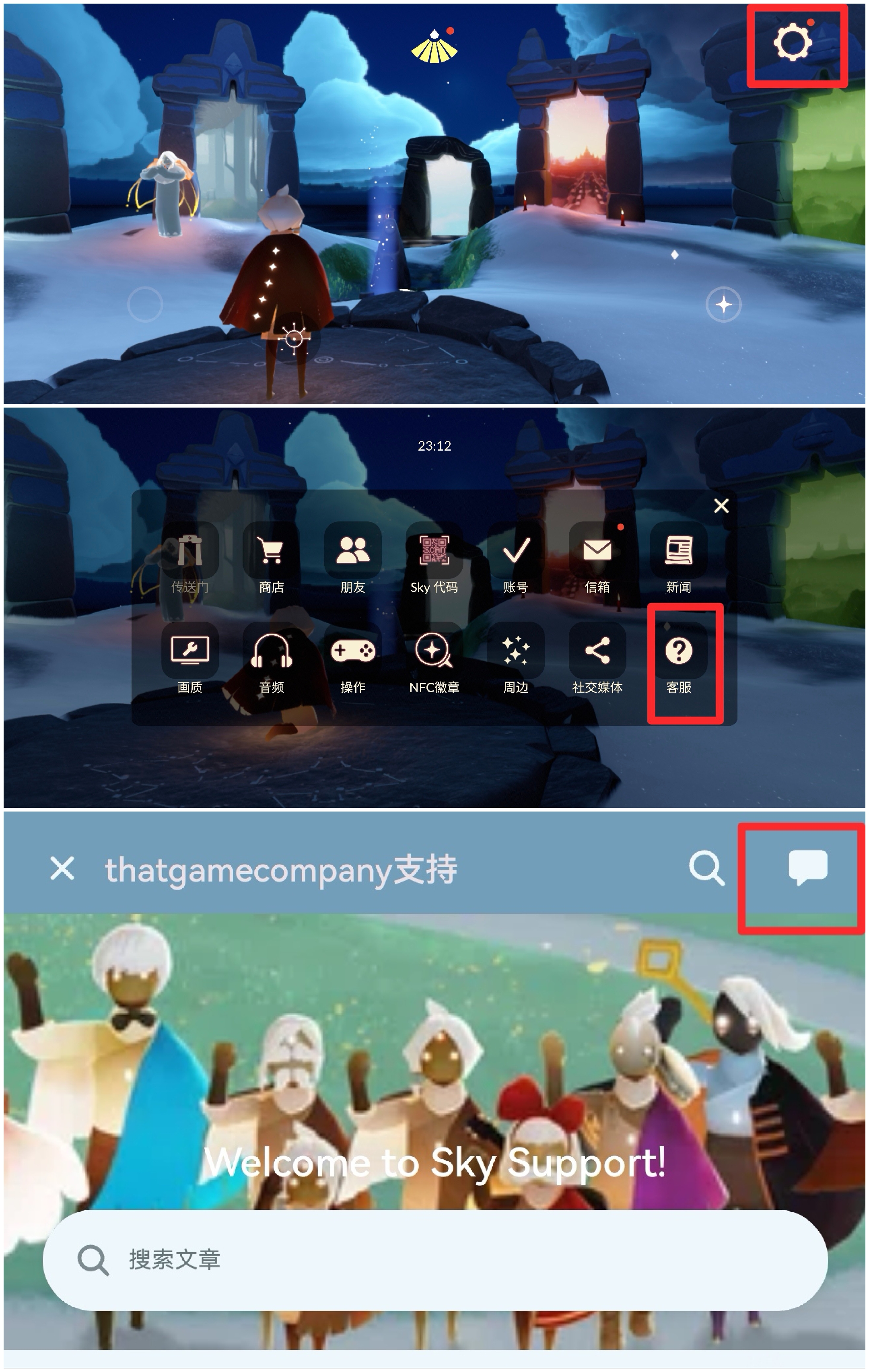 在下方选择「REPORT A BUG.」-「I'd like to report a bug or issue I'm experiencing in Sky.」后,输入下方任意一段话后点击发送。