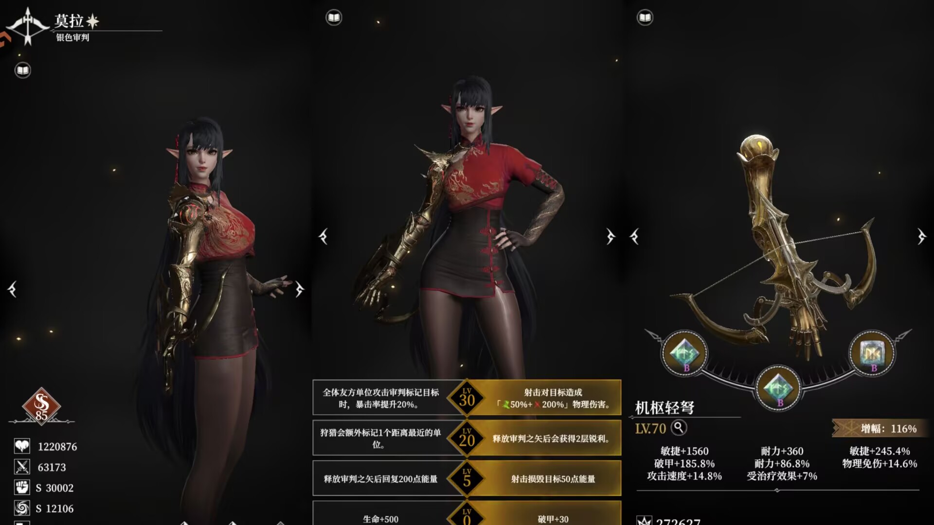 解析:银色审判是我们的核心射手输出,双专注可以最大化提升暴击伤害,神勇可以提升暴击加成,让银色审判输出爆表。