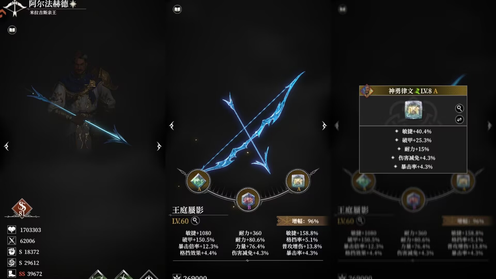 但是如果你的攻速不够看👀,还是要把专注律文代替成迅捷律文提升攻速。
