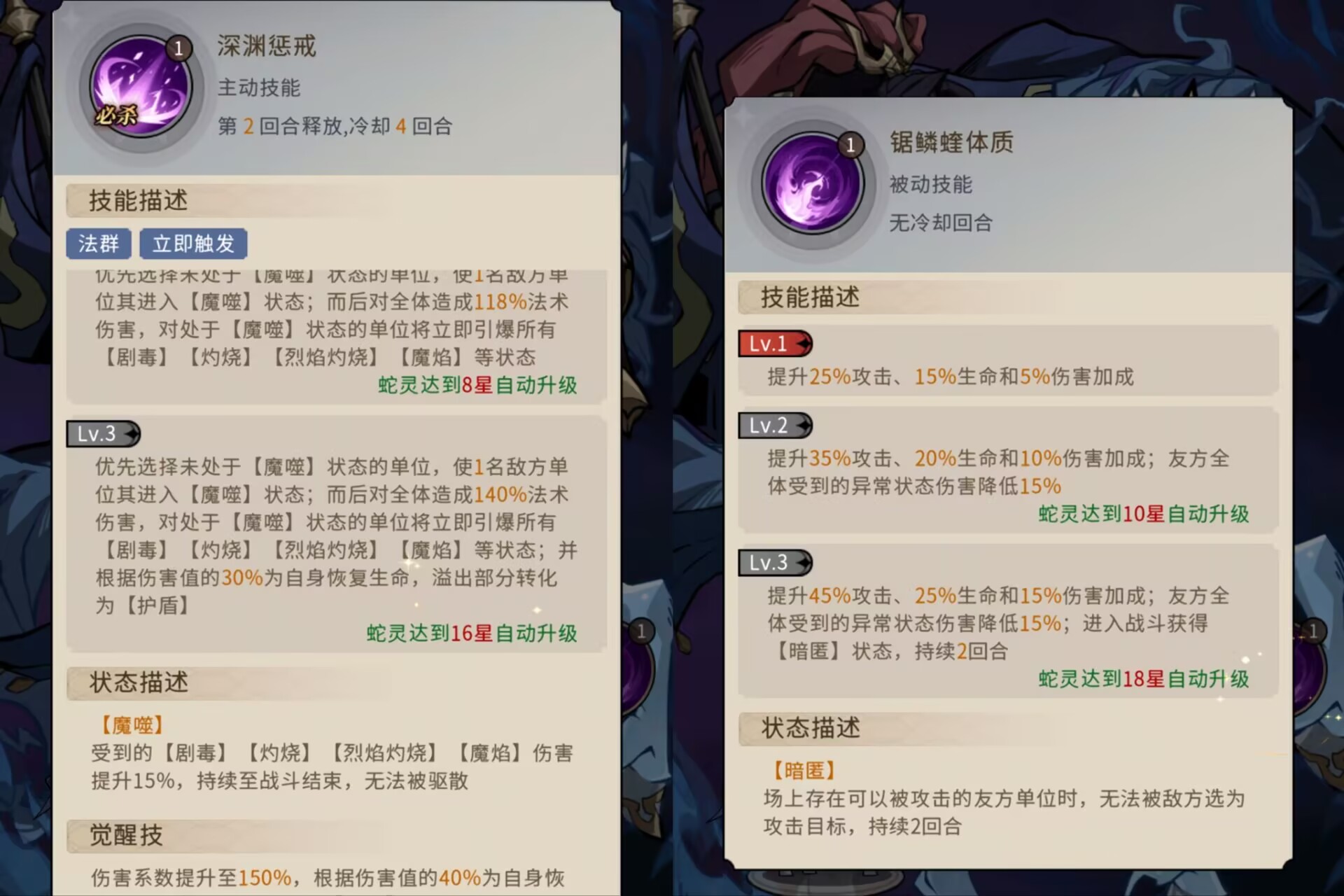 ③每释放6次《烦请堕落》就可以无视控制额外释放1次《深渊惩戒》同时可以提升我方全体的dot伤害。