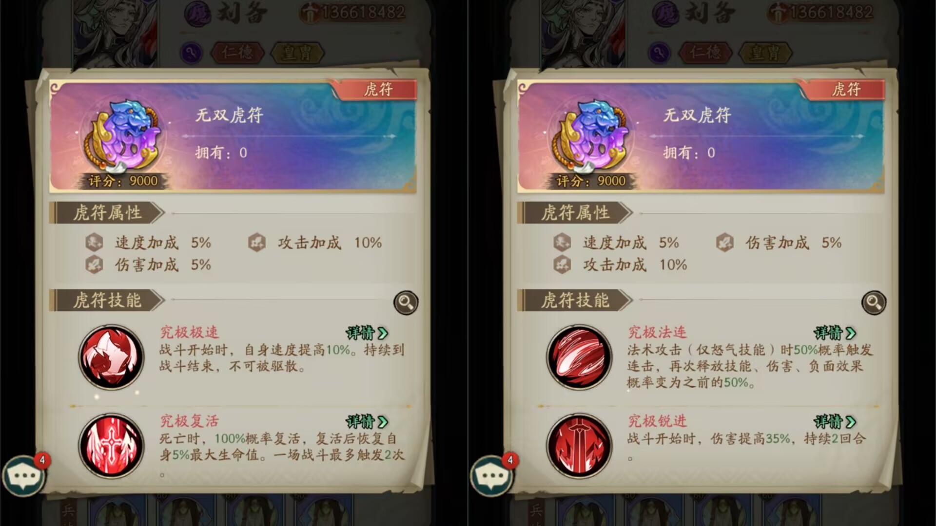 解析:这套虎符技能既能够提高刘备的速度让刘备可以处于队伍的一速释放怒气后给队友增益同时法连和锐进也可以提高刘备的伤害,毕竟刘备是属于增益型法师,增加伤害也是很关键的。
