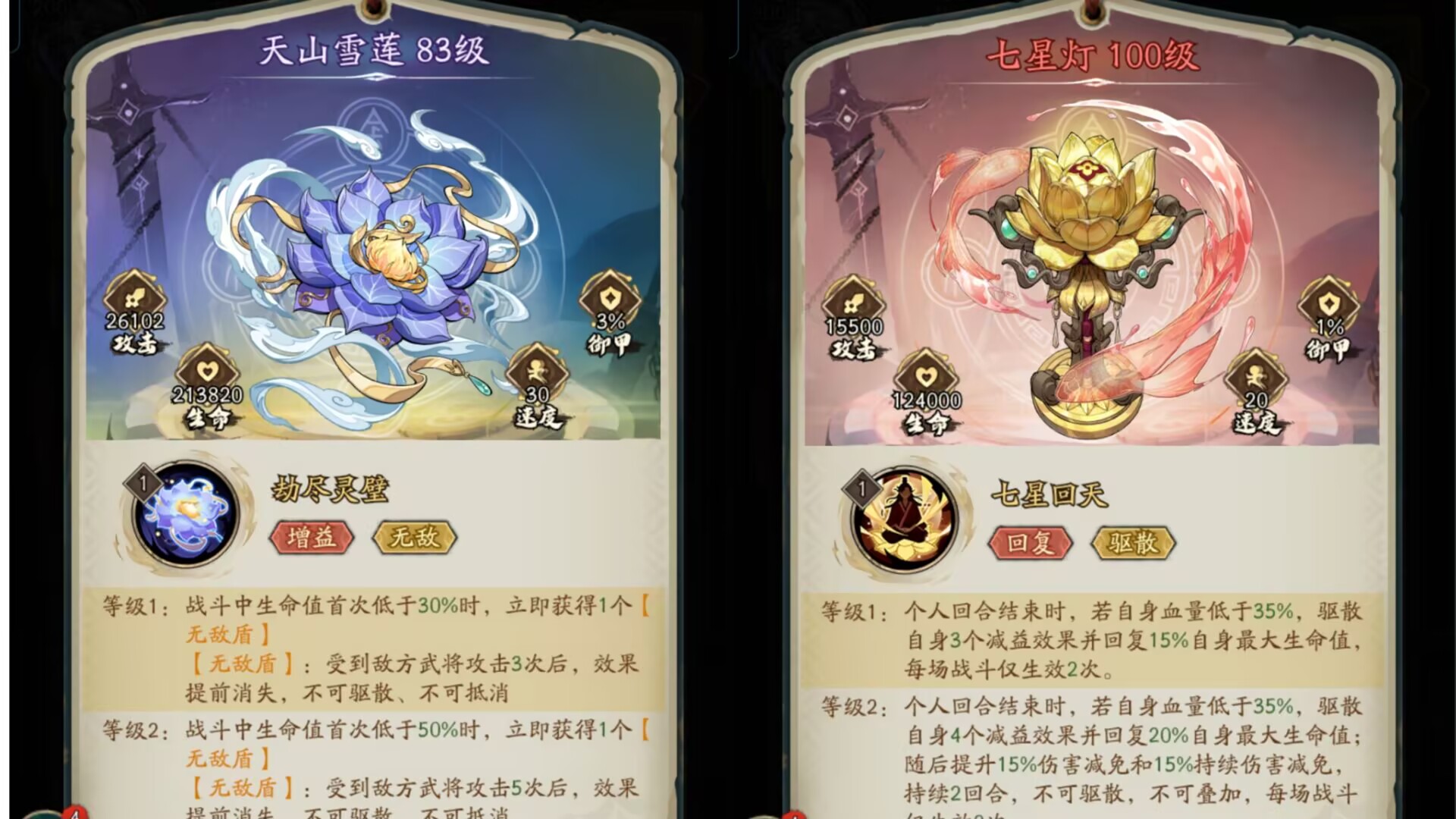 如果没有天山雪莲,像【七星灯】这些也不错可以提高生存和驱散负面加强反打能力。