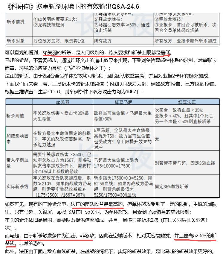 如果非要二选一加入新年马超,那个人观点是,春花优于孙策。原因:1)5红春花的5%血线以下清除不灭并斩杀,以及5红孙策第3回合后不会被击退和斩杀效果失效,都是针对破斩杀的,都适配蜀爷,但5红春花多了溅射类伤害加成,此为一胜;2)马超作为传统直伤大C,搭配核心机制为盾↔火互转的孙策显然是不合适的,此为二胜;3)红豆马超的斩杀线设定,是根据最大生命值百分比来的,在所有斩杀类效果中实际斩杀线阈值最高,作为红豆马超的同素异形体,魂马超如果出斩杀类效果,很可能也会和春花的元炁挂钩,此为三胜;