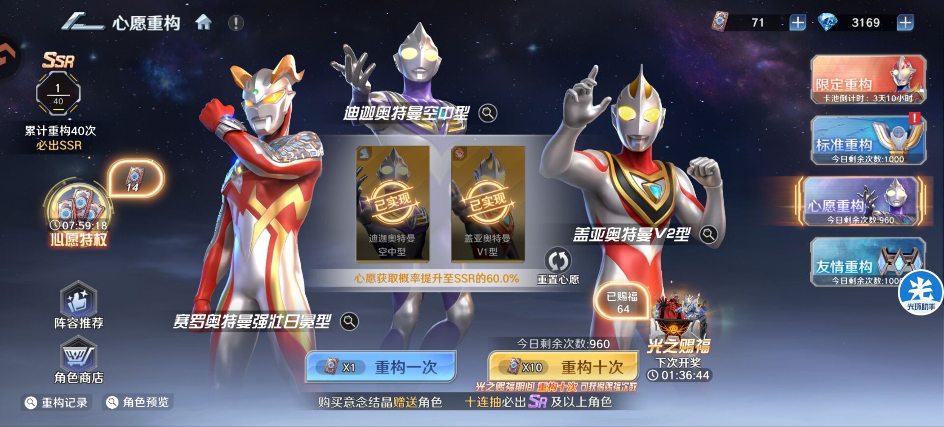 1:【灼烧队】心愿推荐:强力迪迦+梦比优斯(灼烧队的核心主力,也是平民的王牌战神)