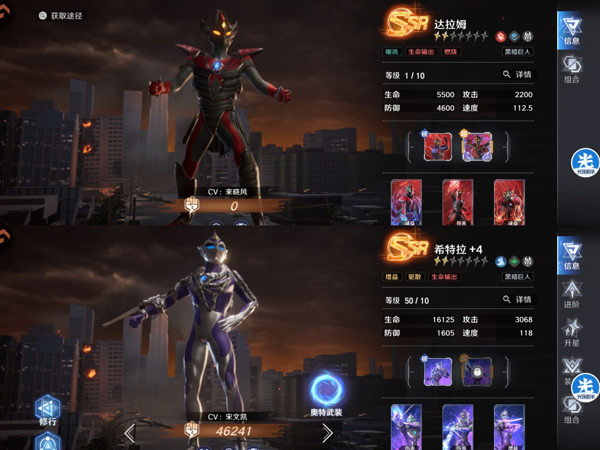 像灼烧队、赛罗警备队、平成队、黑暗巨人队、冰冻队、护盾队、这些队伍核心角色起码心愿卡池可以选择,都是平民玩家可以去玩的阵容。