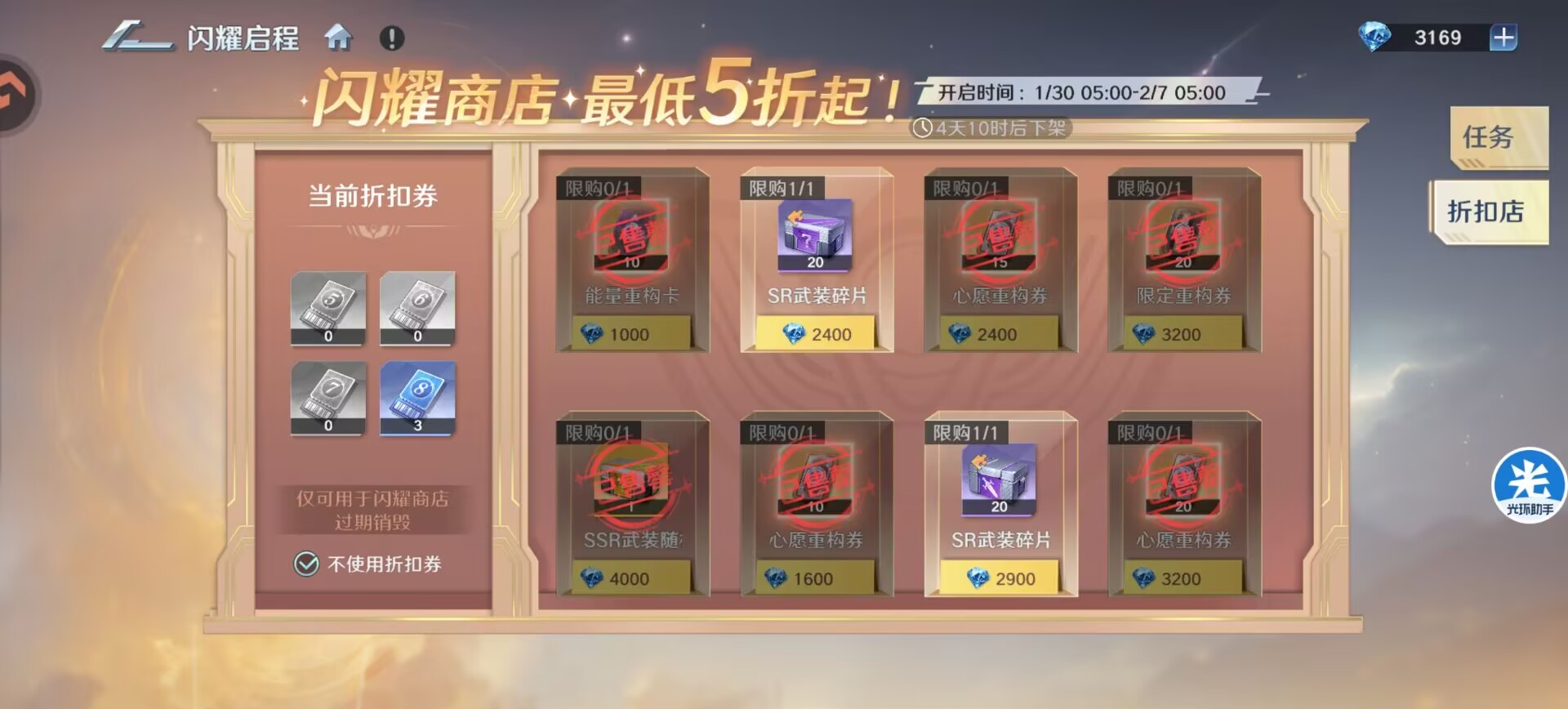 ②钻石第二优先级:【闪耀启程】折扣店。