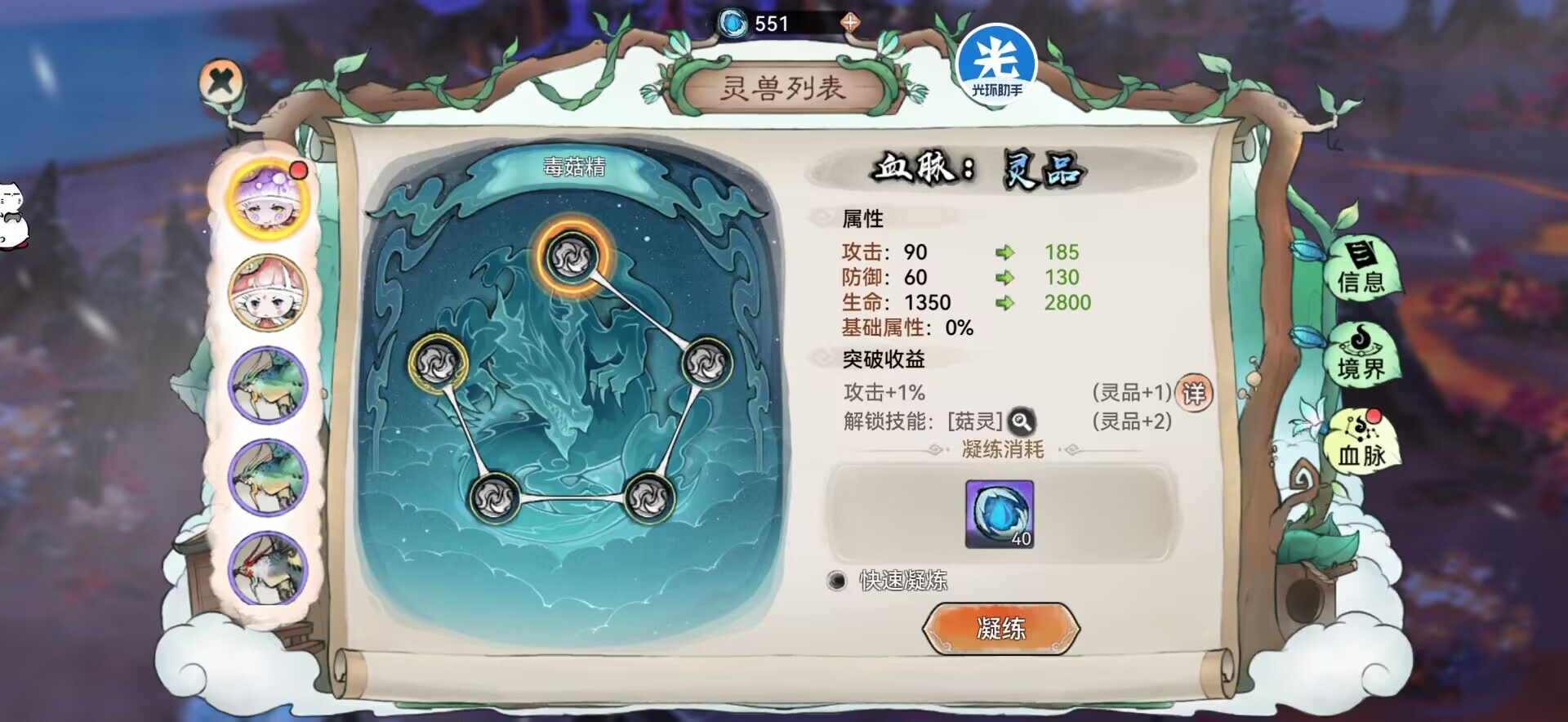 因为灵宠玩法刚开,我们的经验丹和精魄比较缺,因此不推荐大家把这些资源用于不需要的灵宠身上,可以等孵化到【变异灵宠】或【极品灵宠】在使用,或者给6号的联动灵宠也行。