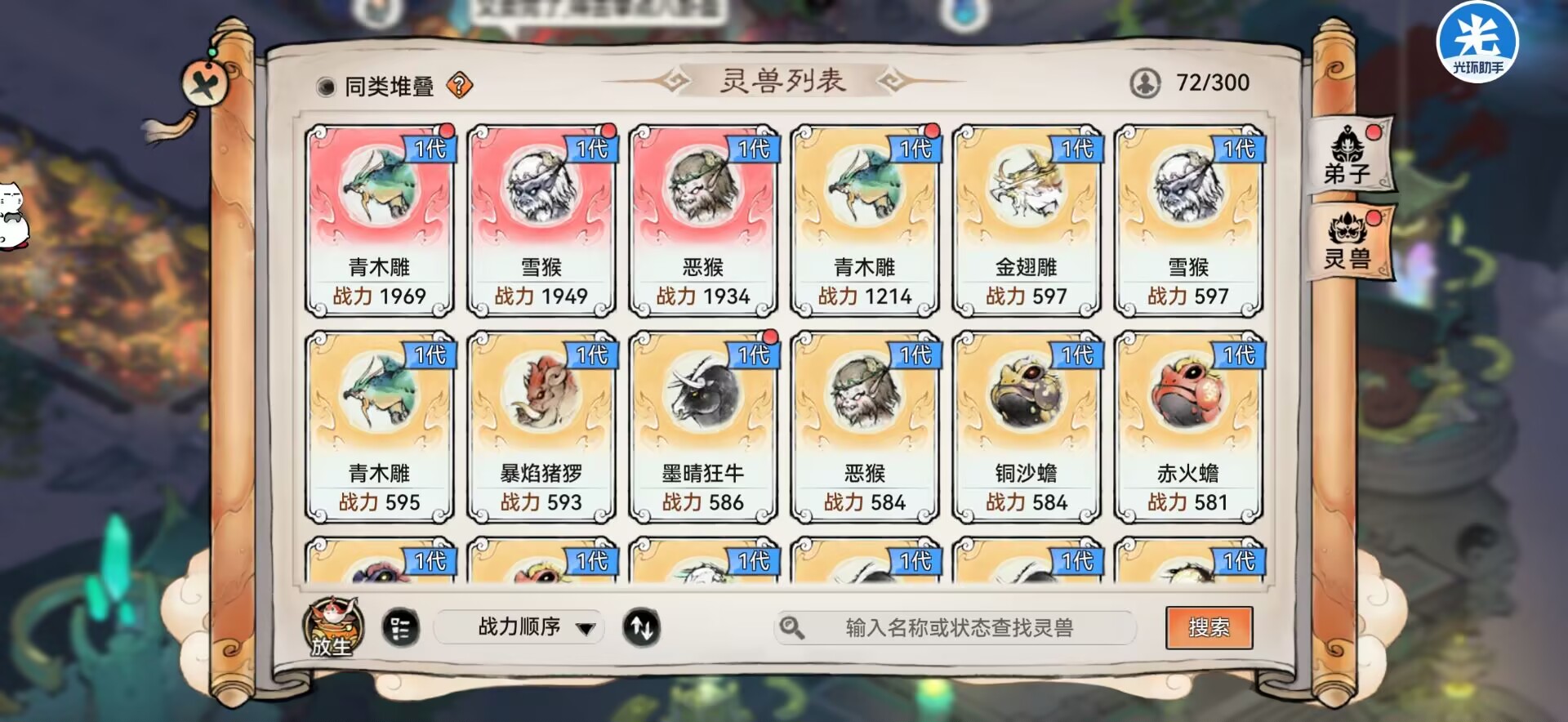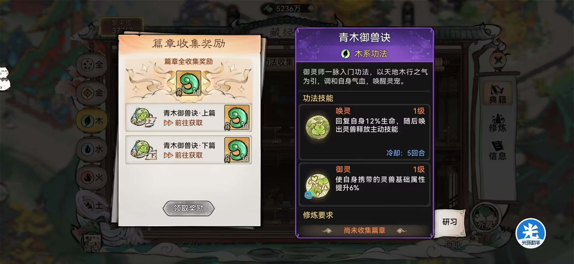 但是必须装备相应属性的【御兽决】才能在战斗中使用,比如木属性的灵宠就需要装备木属性的御兽决。