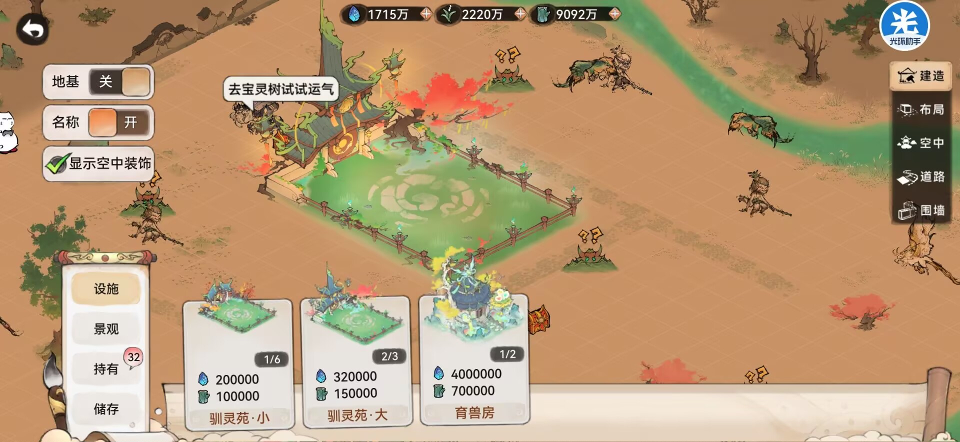 ①目前一共可以建造3个大训灵苑和6个小训灵苑。