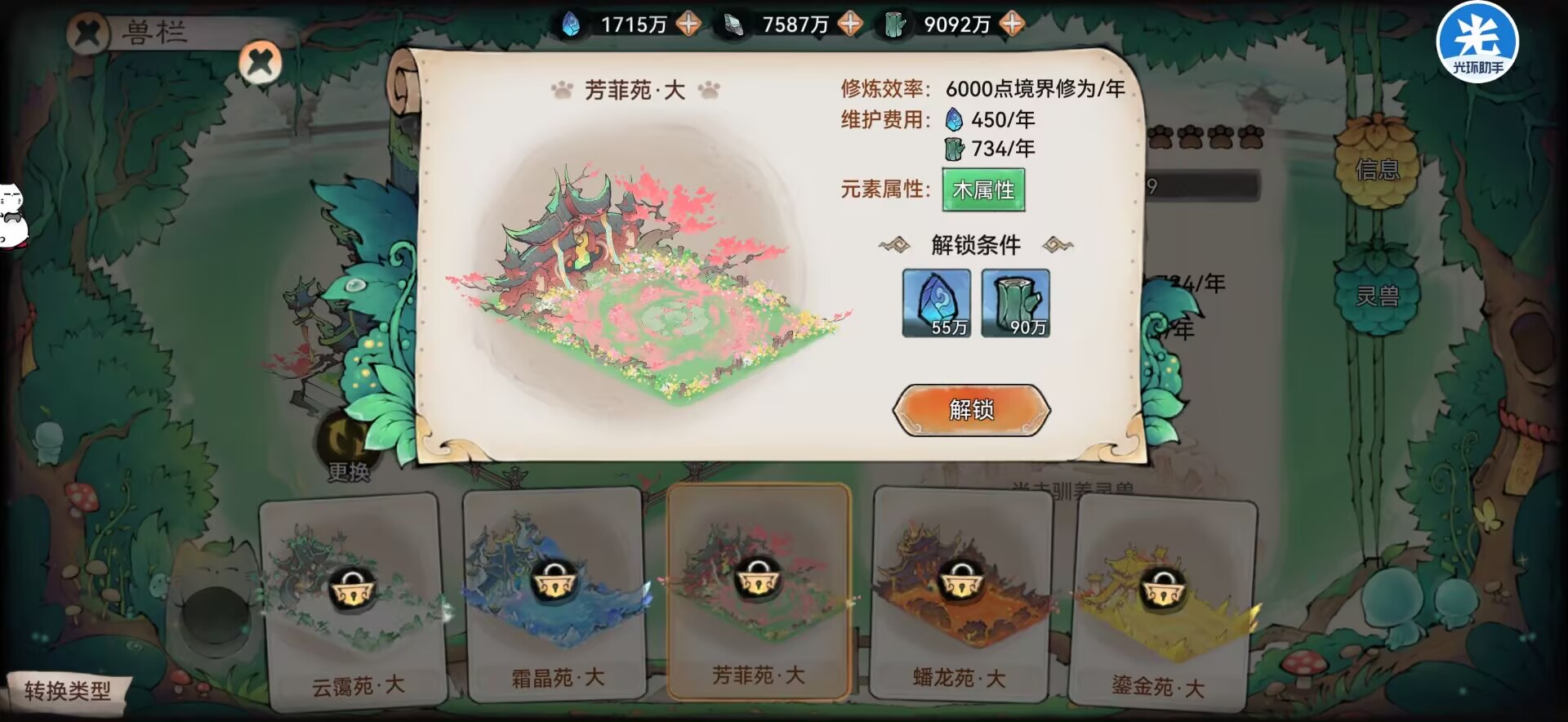 ⭐木属性的灵宠放进【木训灵苑】会获得更多的修炼经验。
