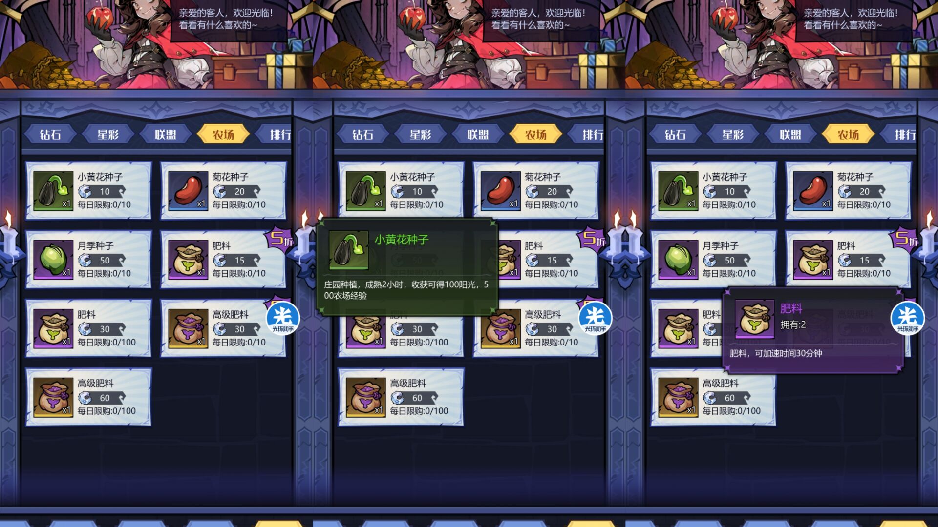 四:【农场商店】兑换推荐。获得种子和肥料的商店,这个商店主要看自己的需求兑换。