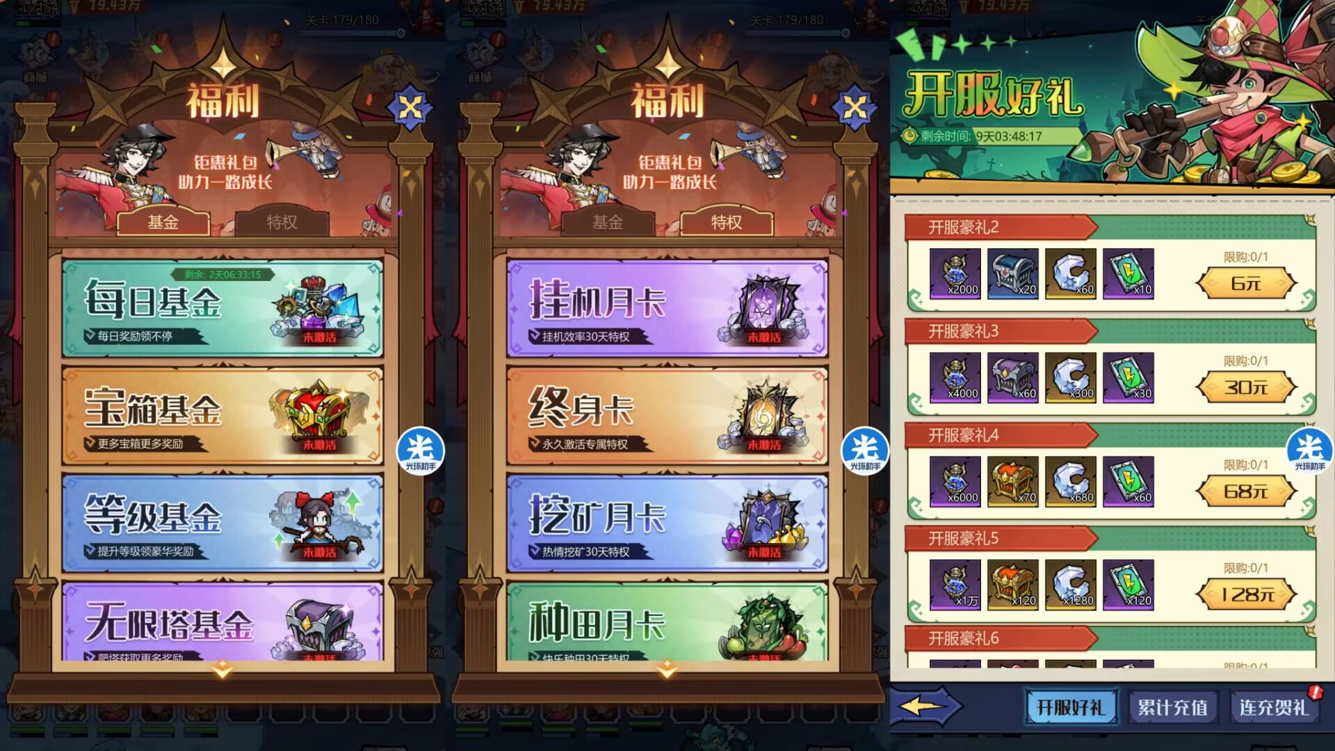 ②宝箱基金30元=额外活动大量的宝箱,加速前期成长,性价比挺高。