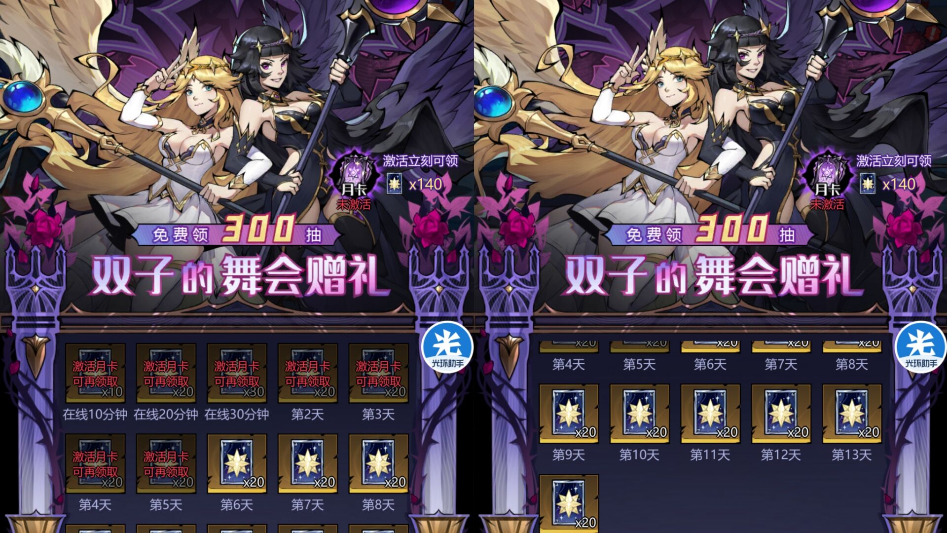 五:【开服百抽狂欢】活动。这个活动14天一共可以领300抽,如果氪了月卡可以额外领140抽。