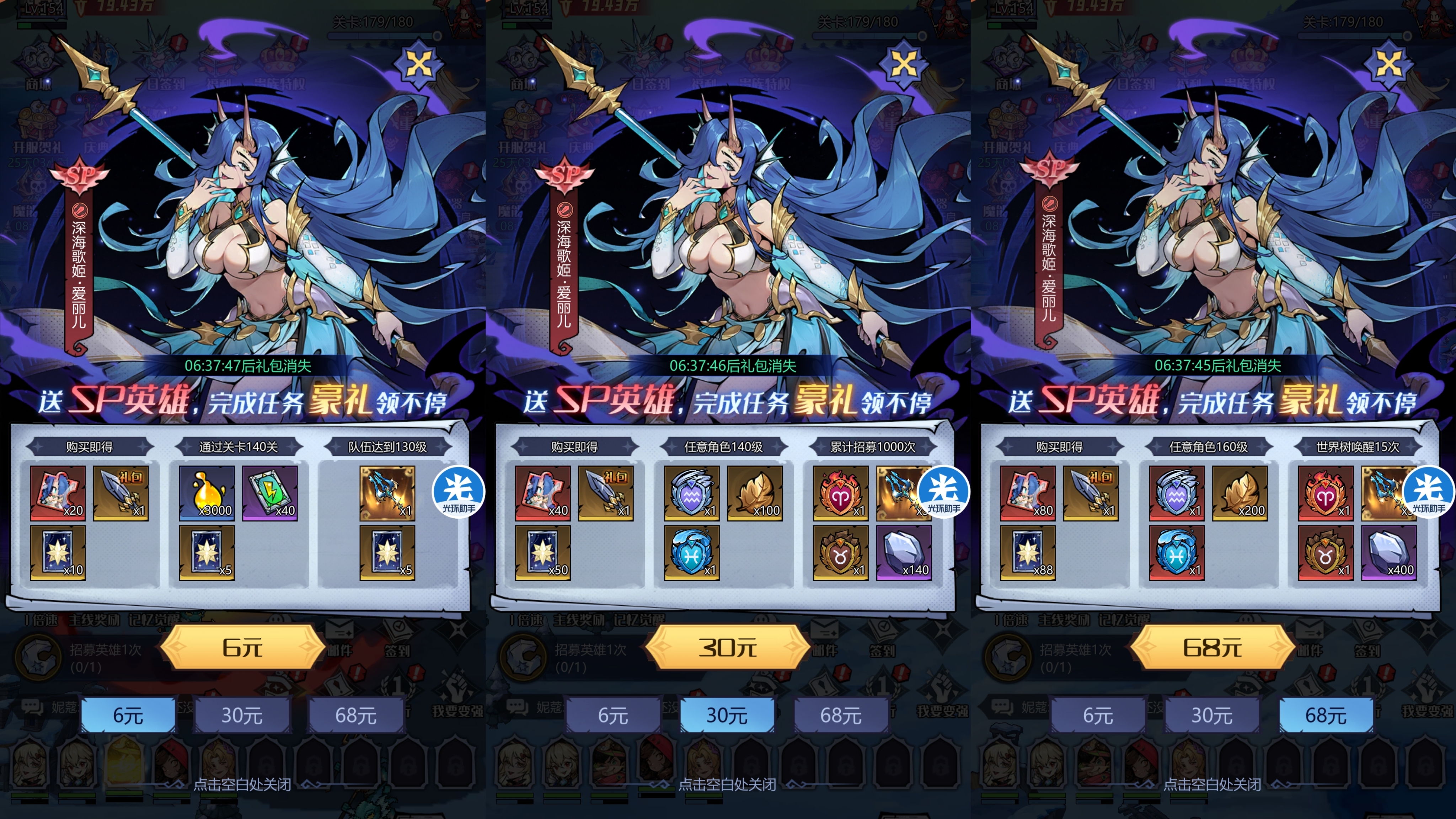 ⑨开服贺礼6元到68元都可以买性价比很高适合微氪玩家买。