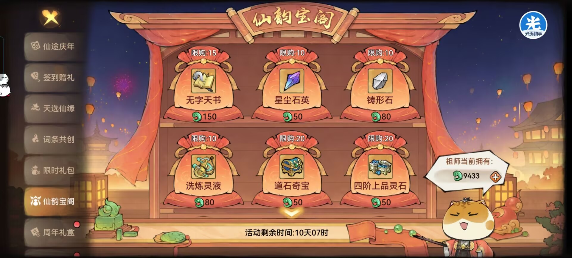 像:天书、石英、许愿币、洗练石、灵石、灵草灵木、仙缘令这些都可以无满买即可。