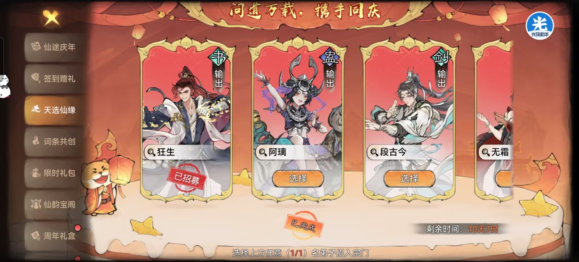 比如推荐大家选择的就是:啊璃、狂生、紫灵、萧晨、苜蓿、卫寒。