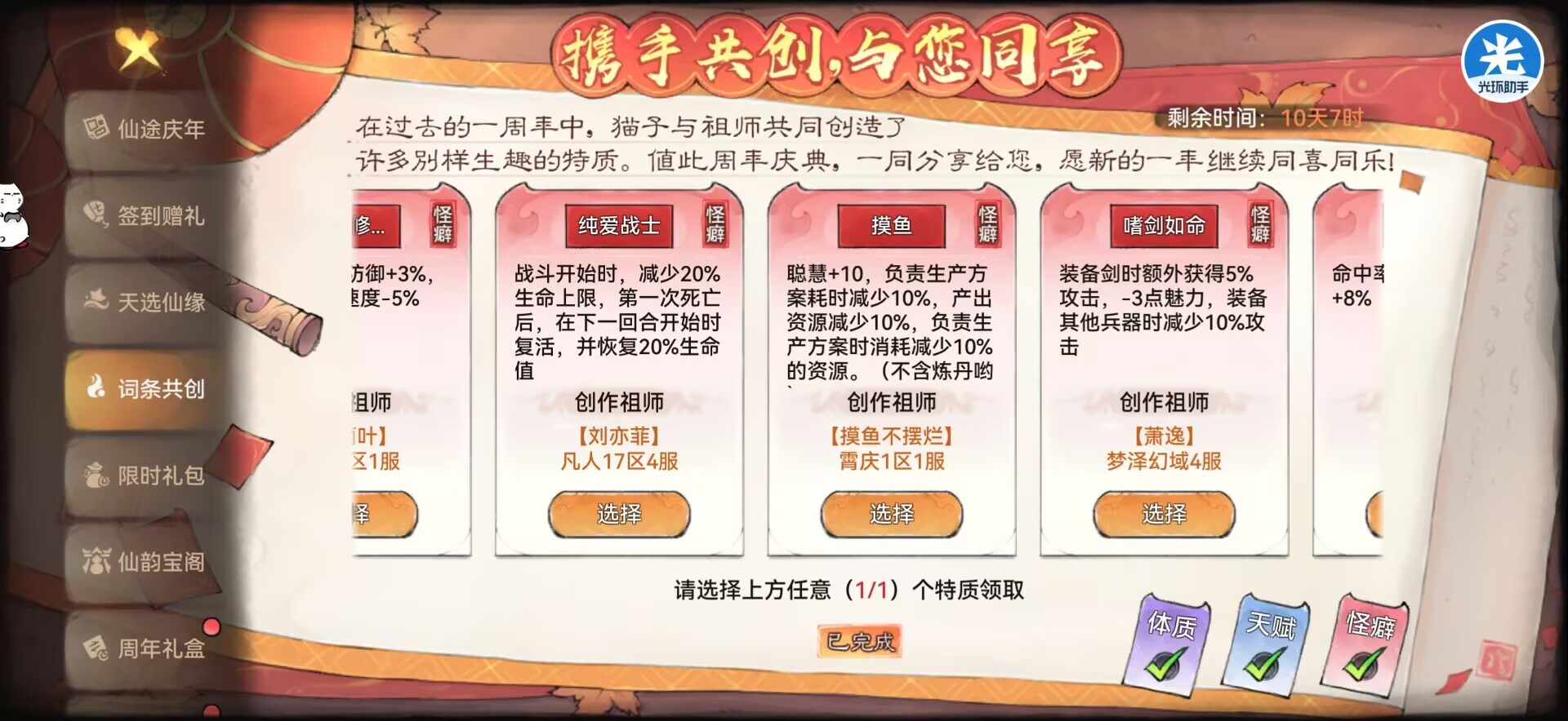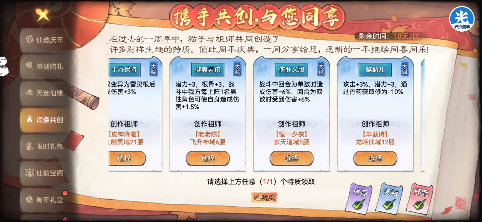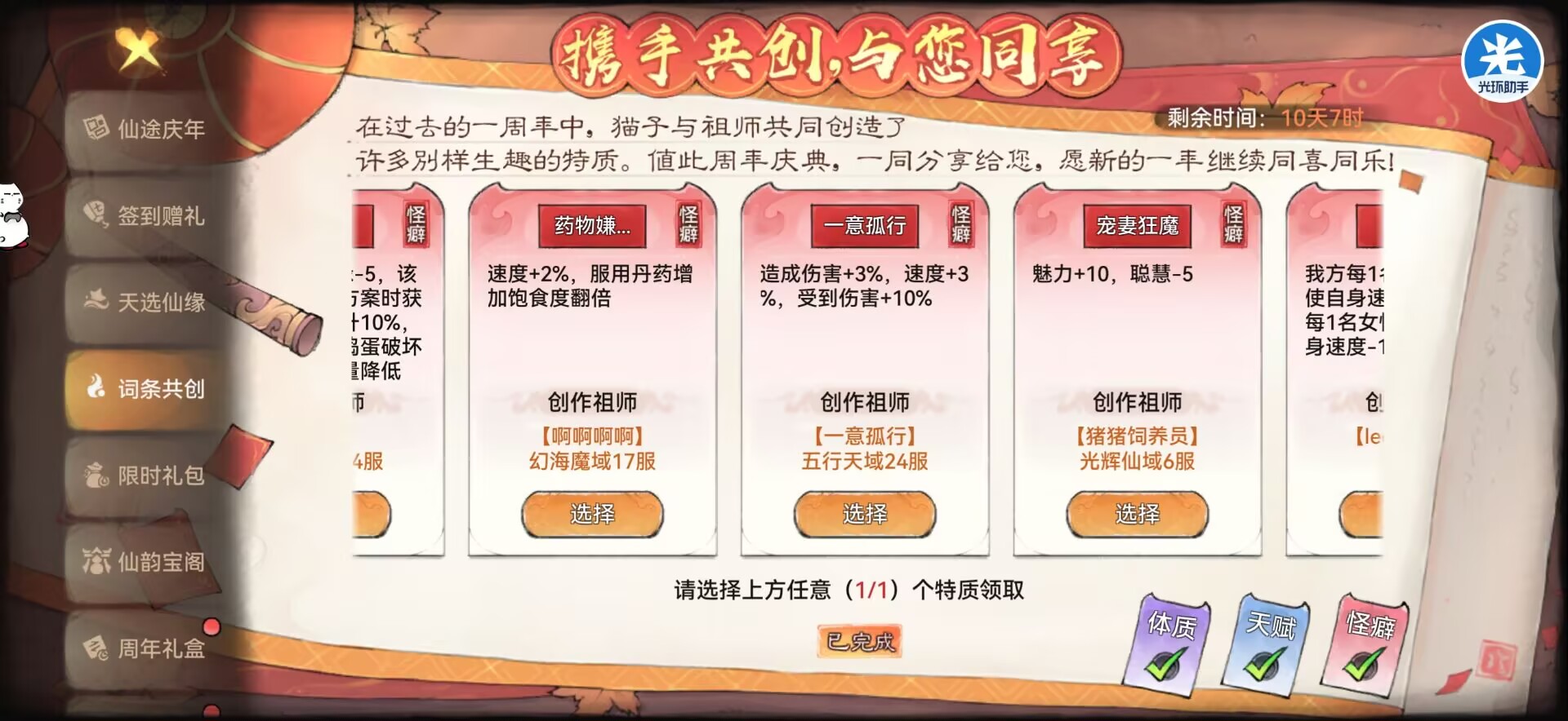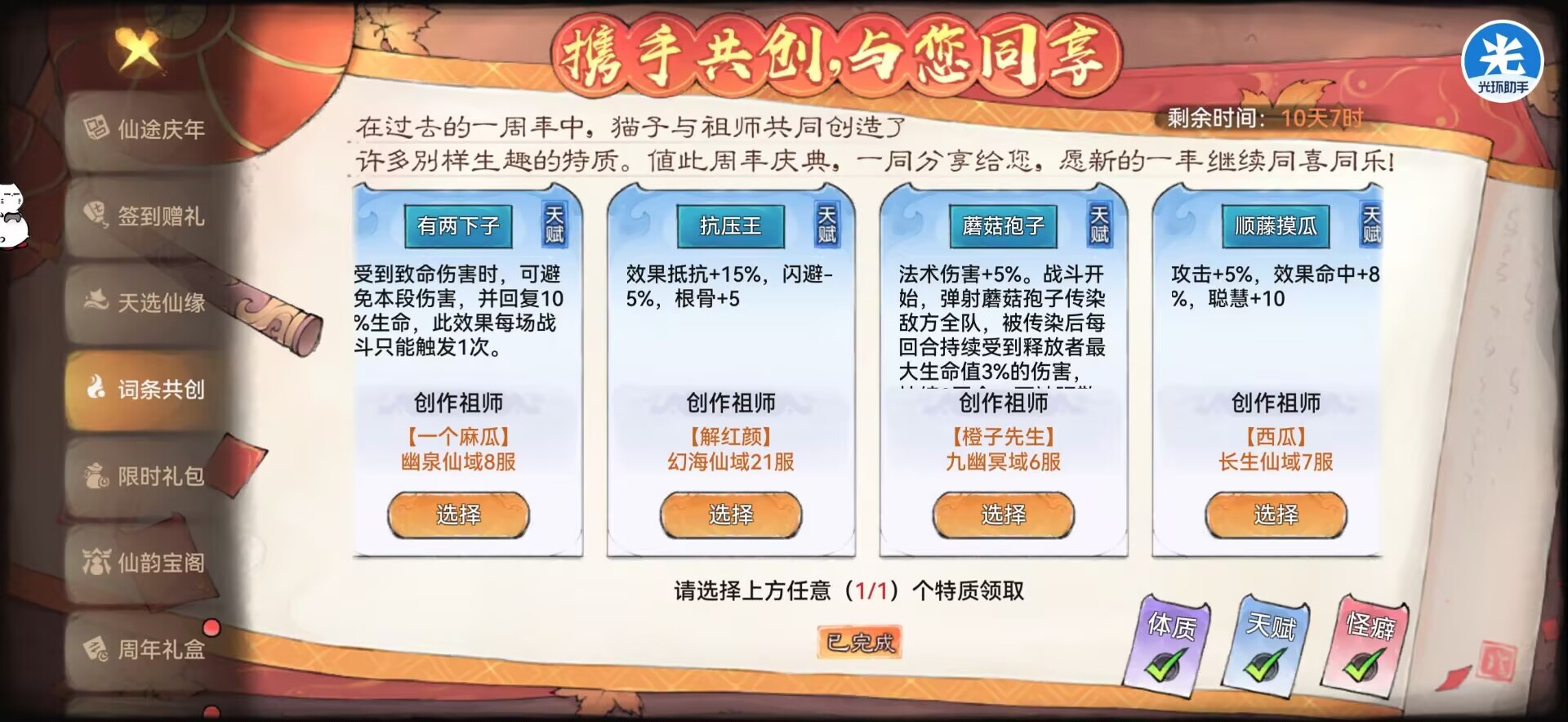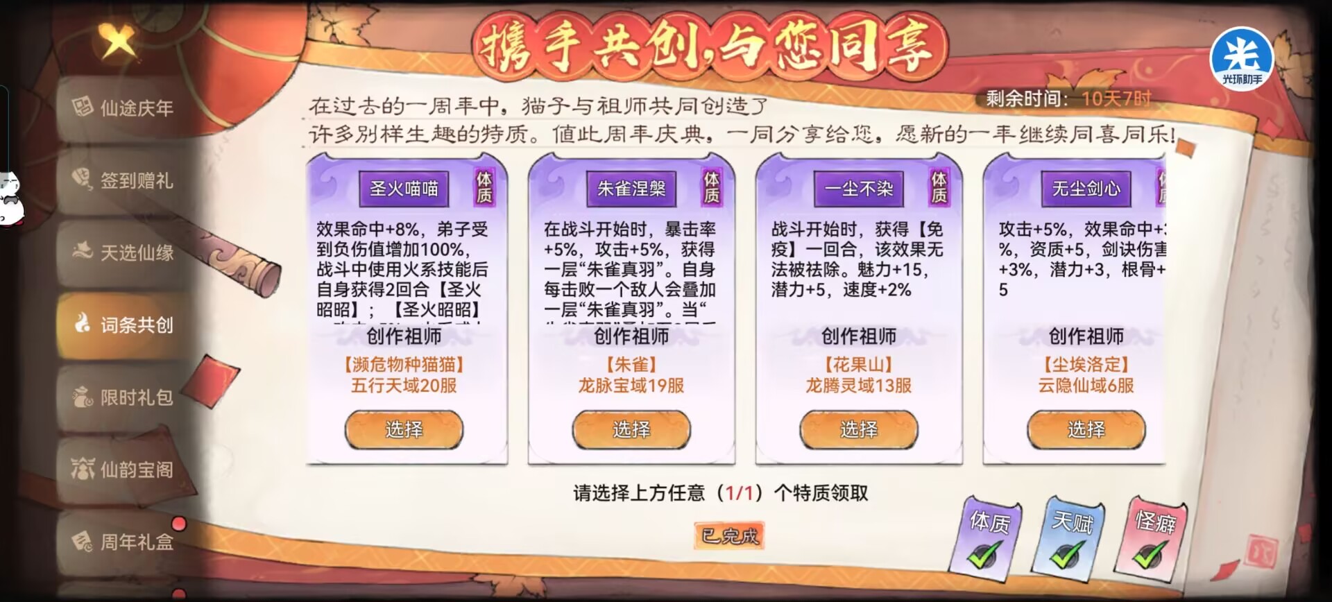 比如:二周年词条怎么选?自选仙缘怎么选?等问题!本期攻略狮子都会给大家讲解,ok那么一起进入本期攻略吧。