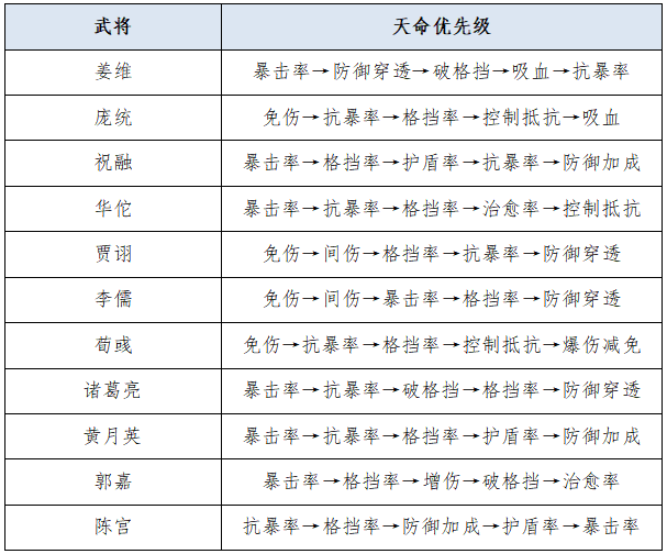 【重点】下图前三项部分为最佳3天命,但由于刷出完美词条较难,建议玩家按先后优先级顺序取舍,此外,3橙天命通常是固定比非3橙天命好的,资源不足且刷出3橙天命时,建议玩家先用着,等后期资源较充沛再考虑刷新词条。