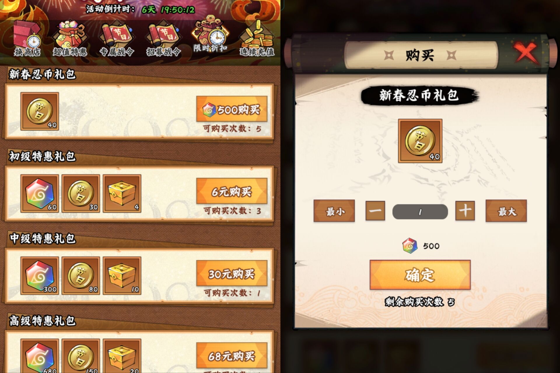 ①500忍币=40个节日币,可以买5次!很推荐大家买完,然后去商店兑换物品。