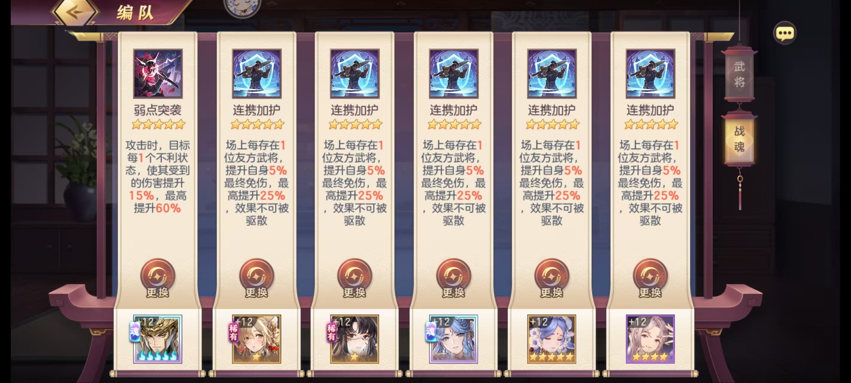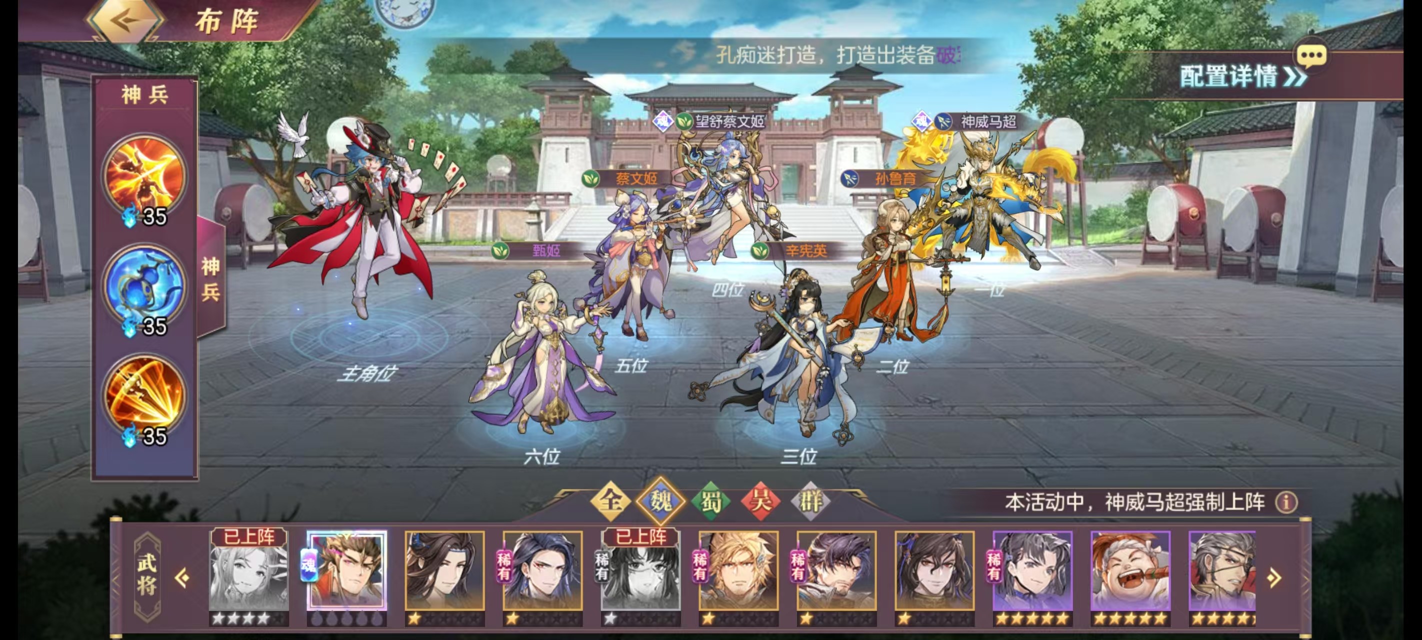 除sp马超sp蔡文姬外,全上治疗或者没伤害没机制没练度的女卡即可,步练师甄姬普通蔡文姬小虎辛宪英之类的。