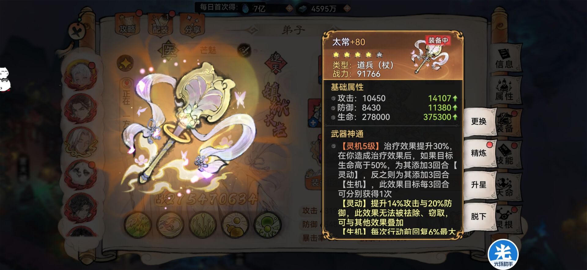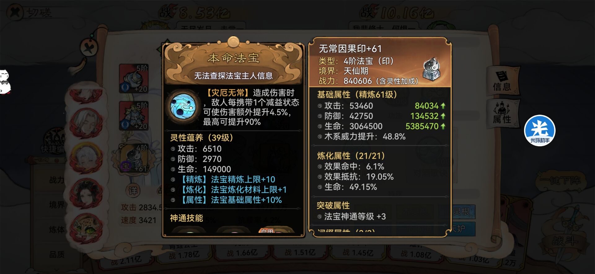 比如:《法宝炼化生命》《装备2+2生命》。
