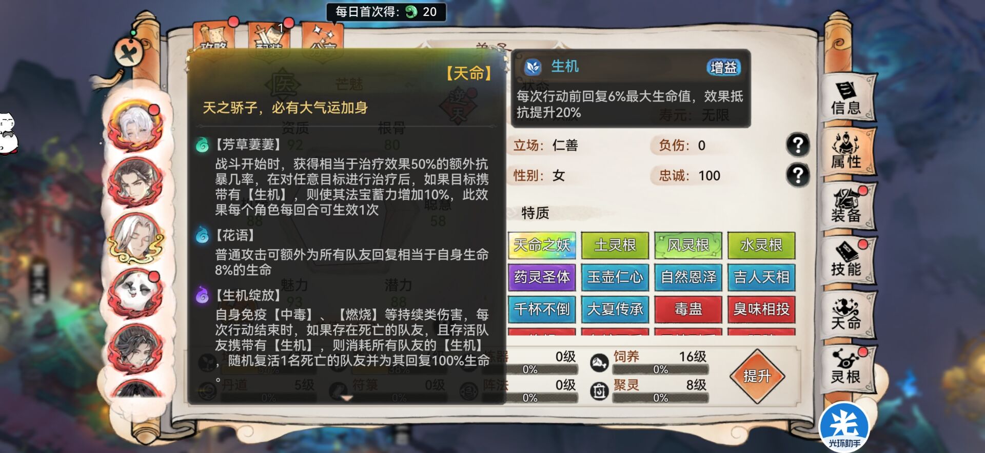 当然如果你是超级大佬满级的灵阵还可以额外提升20%的治疗效果。