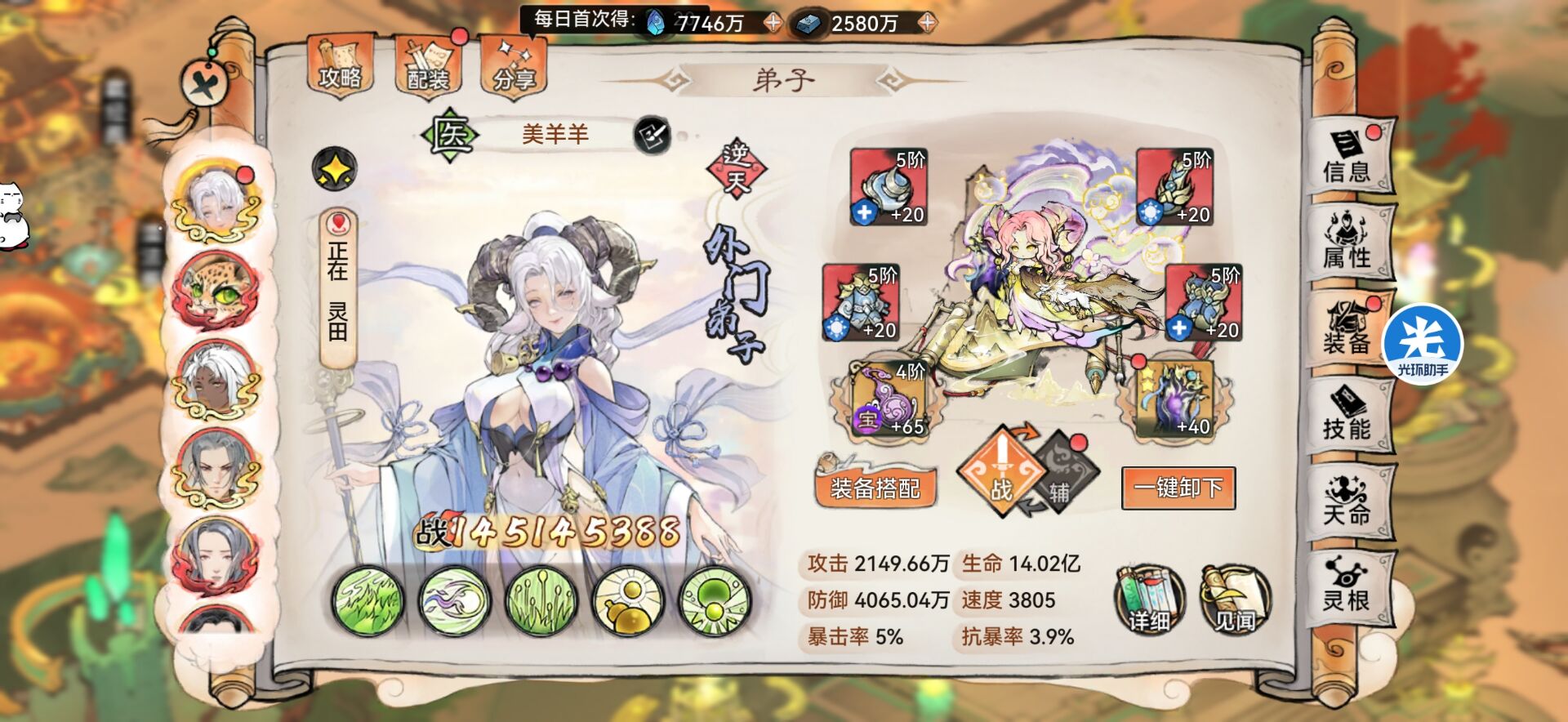 狮子是不推荐炼化生命的,为什么不推荐炼化生命?因为现在版本主流c位是:二阶老李、狂生、韩立、蛇兵这些输出的优点就是高暴击。