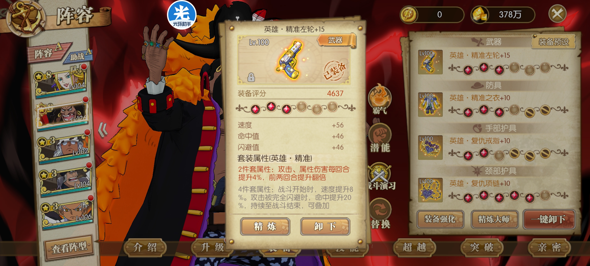 2件精准每回合+攻击和属伤,打这种副本是最爽的。